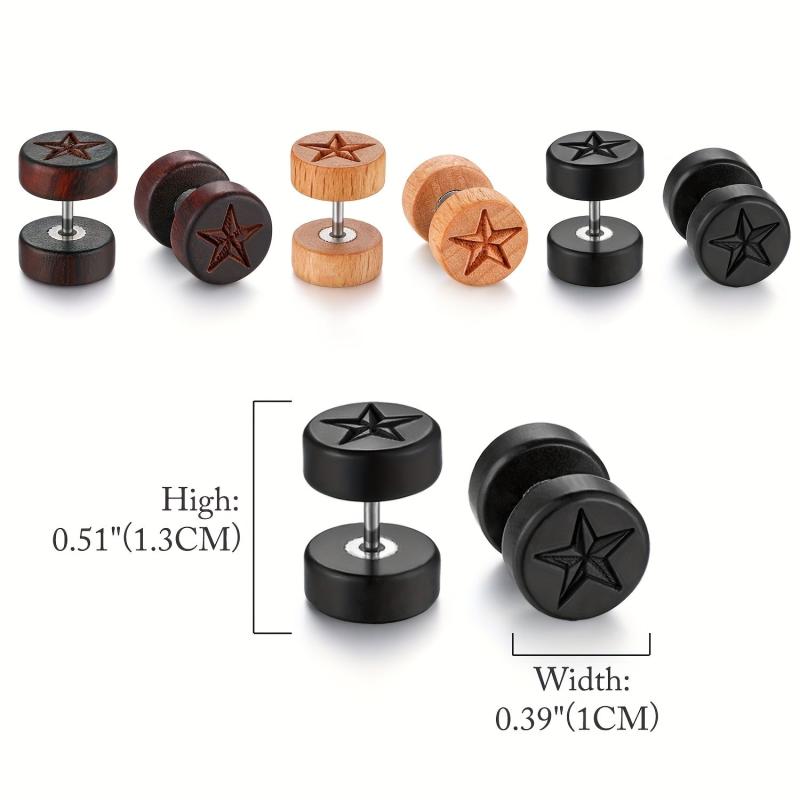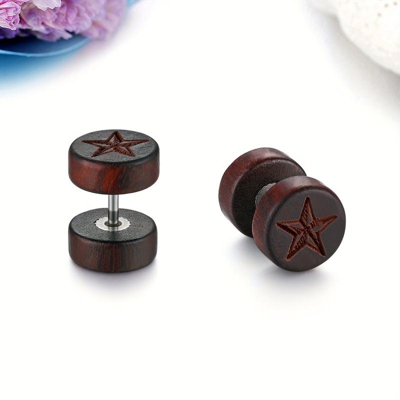 Embrace a classic retro style with these unisex ear pins featuring a wooden five pointed star design. Made of high-quality stainless steel, they are suitable for both men and women.