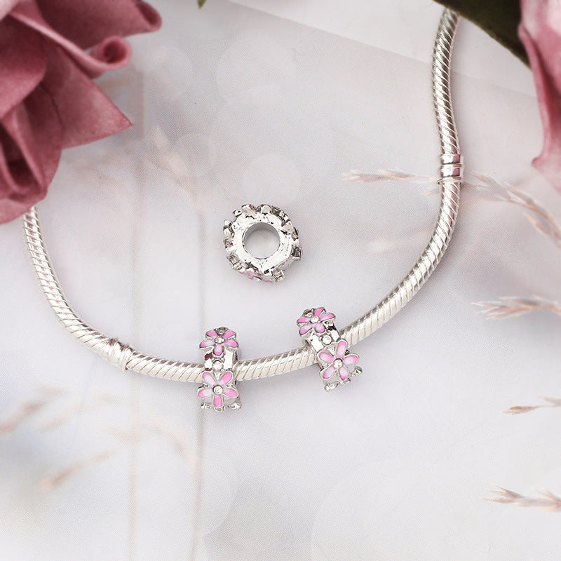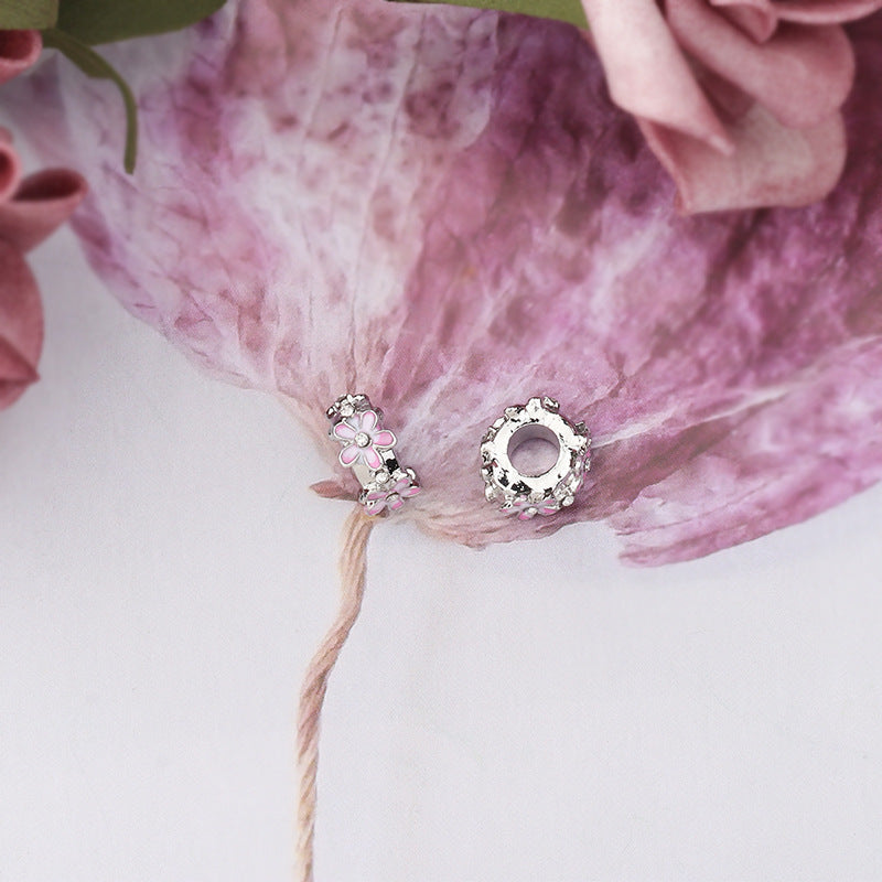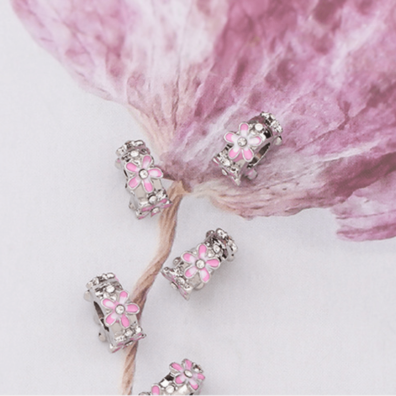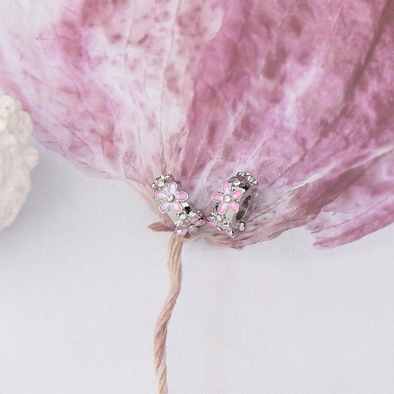 Add a touch of glamour with this silvery large hole bead featuring a rhinestone decor flower print. Perfect for earrings, bracelets, necklaces, and other accessories.