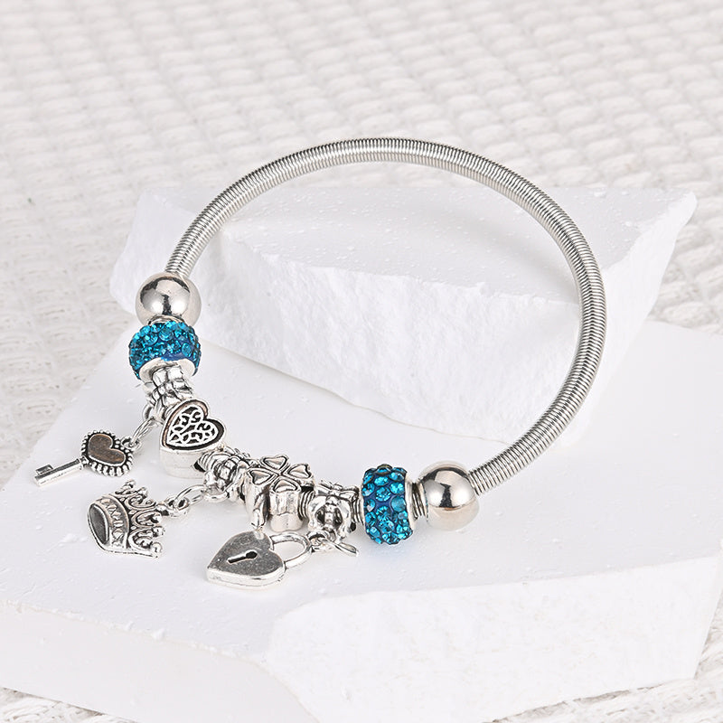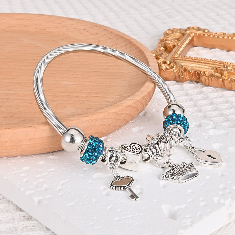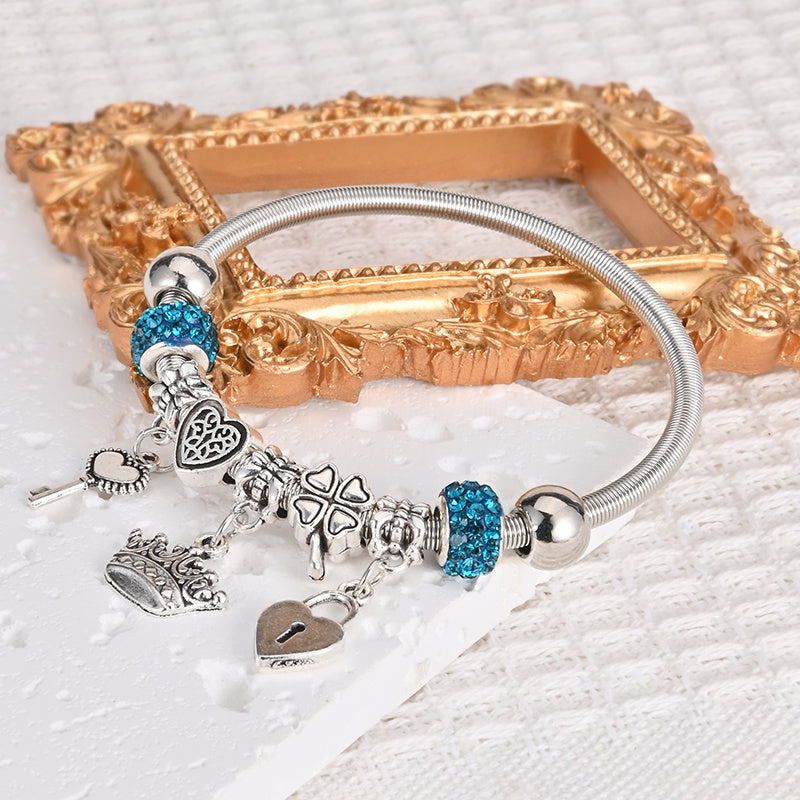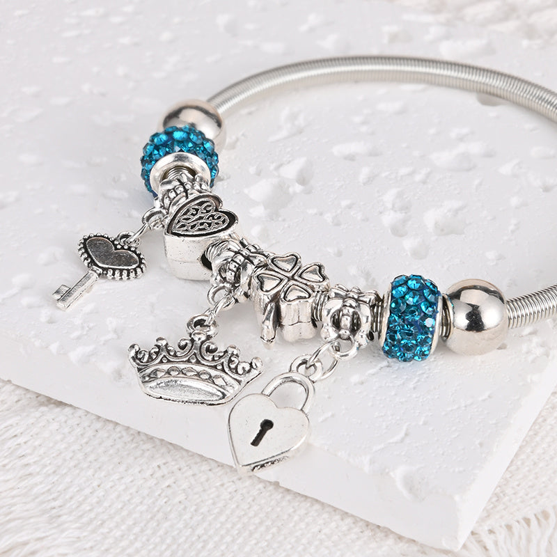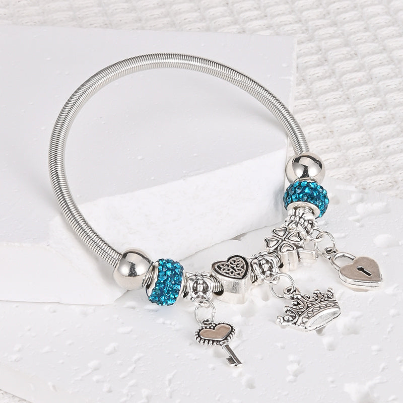 Enhance your style with this fashionable jewelry set that includes rhinestone spacer beads and assorted silvery charms. Perfect for adding a touch of elegance to any outfit.