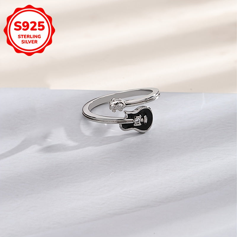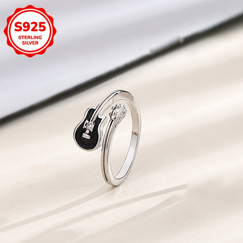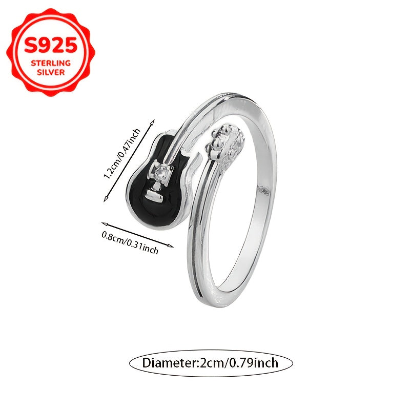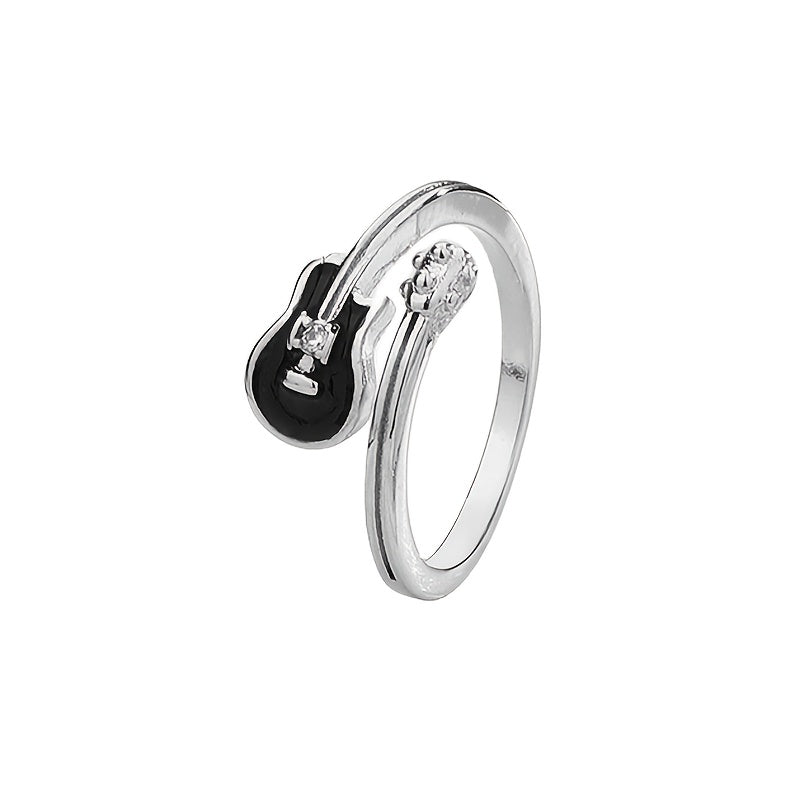 S925 Guitar Ring Hip Hop Style Adjustable Band Gift Jewelry