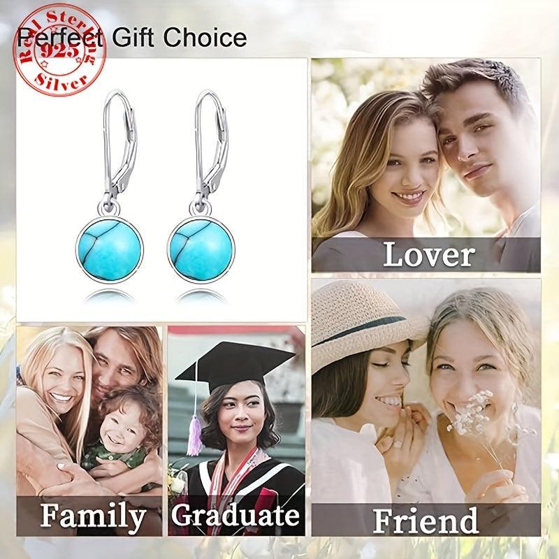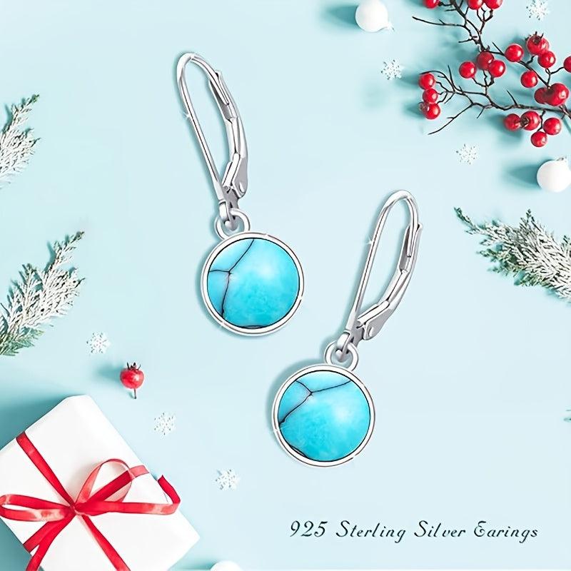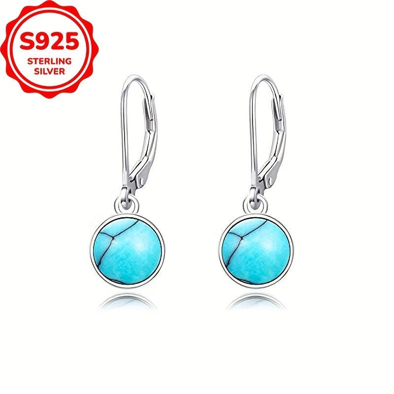 These elegant earrings feature a round turquoise stone with an irregular pattern, perfect for daily wear. Crafted from pure s925 silvery, these earrings are low-allergy and lightweight.