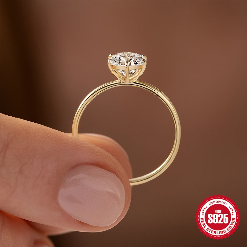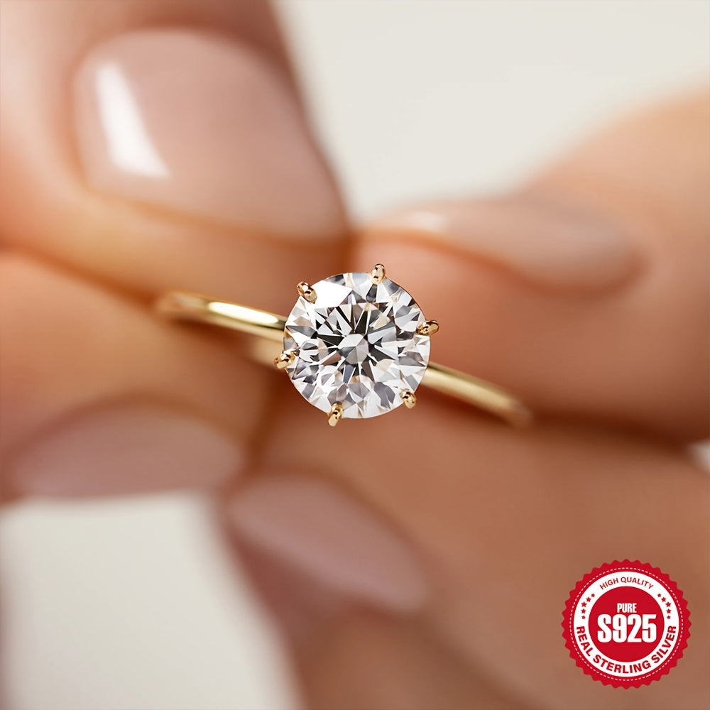 This classic claw ring is made of S925 silver with a round cut synthetic zirconia stone, available in 1ct, 2ct, or 3ct. It is an ideal holiday gift, weighing 2.5g and suitable for all seasons.