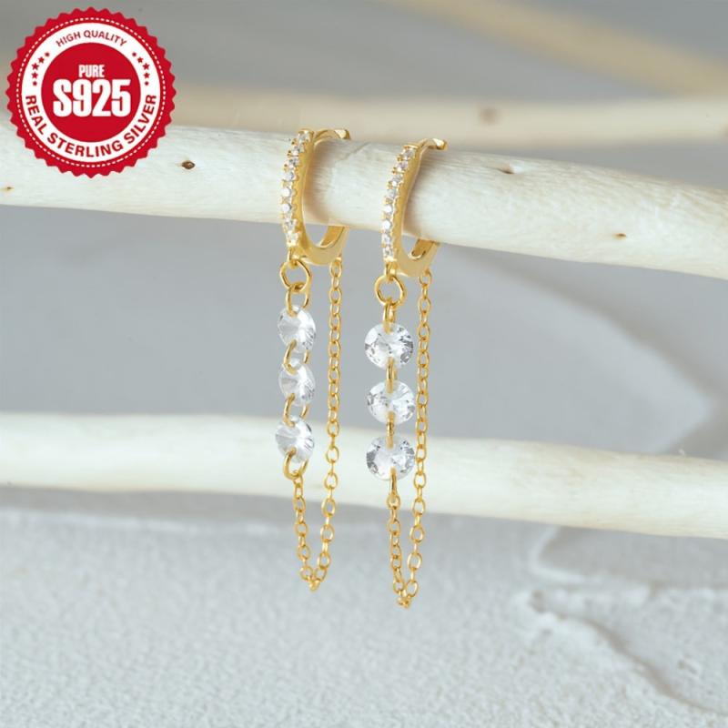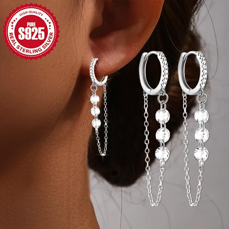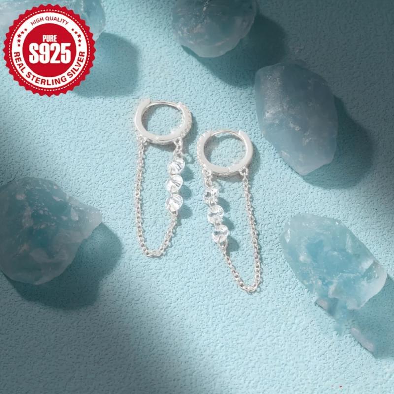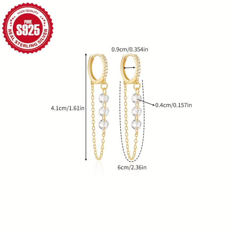Add some sparkle to your outfit with these unique S925 silver earrings featuring zirconia chain link blingbling design. Perfect for daily wear or parties, they make a great gift for women.