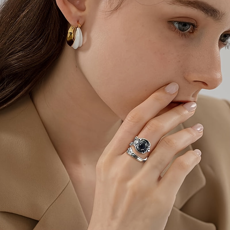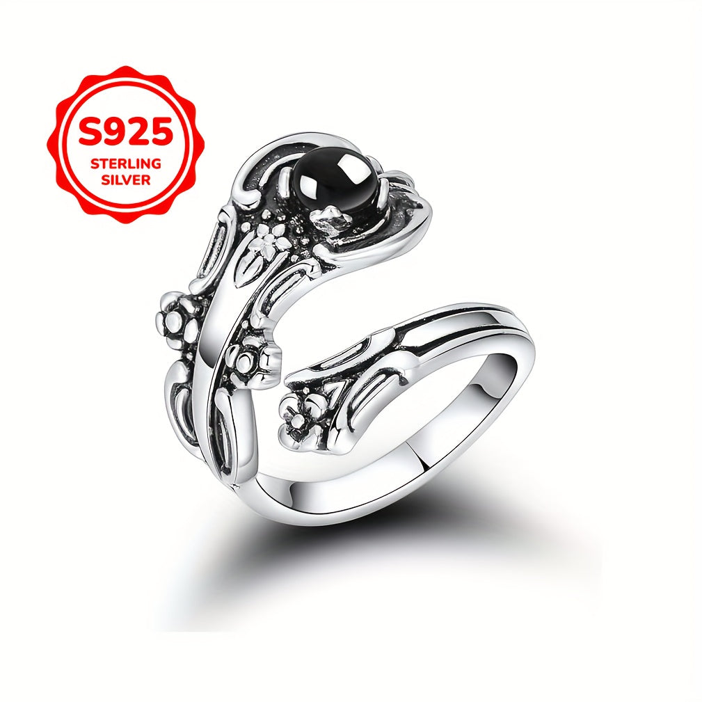 This adjustable open ring is made of high-quality S925 silver with a beautiful floral design and agate inlay. It is hypoallergenic and lightweight, perfect for daily wear or as a special jewelry gift for her.