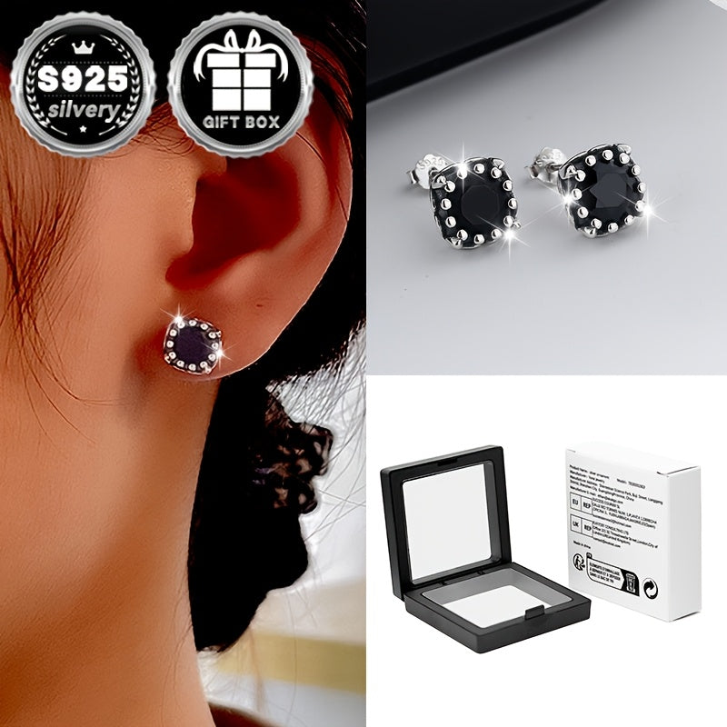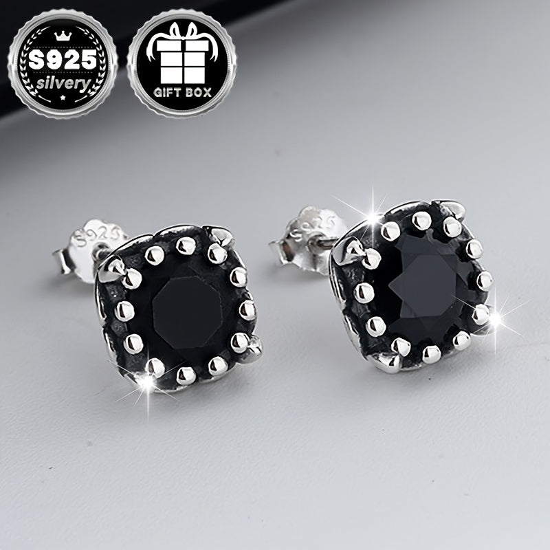 These elegant earrings feature a square zirconia design in a retro style. Made of pure silver, they are hypoallergenic and perfect for sensitive ears.