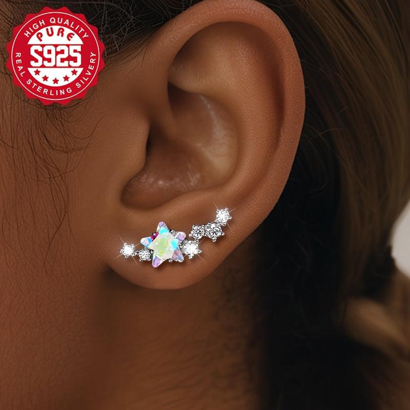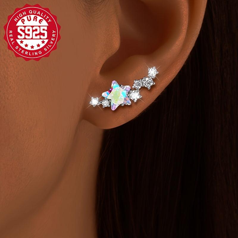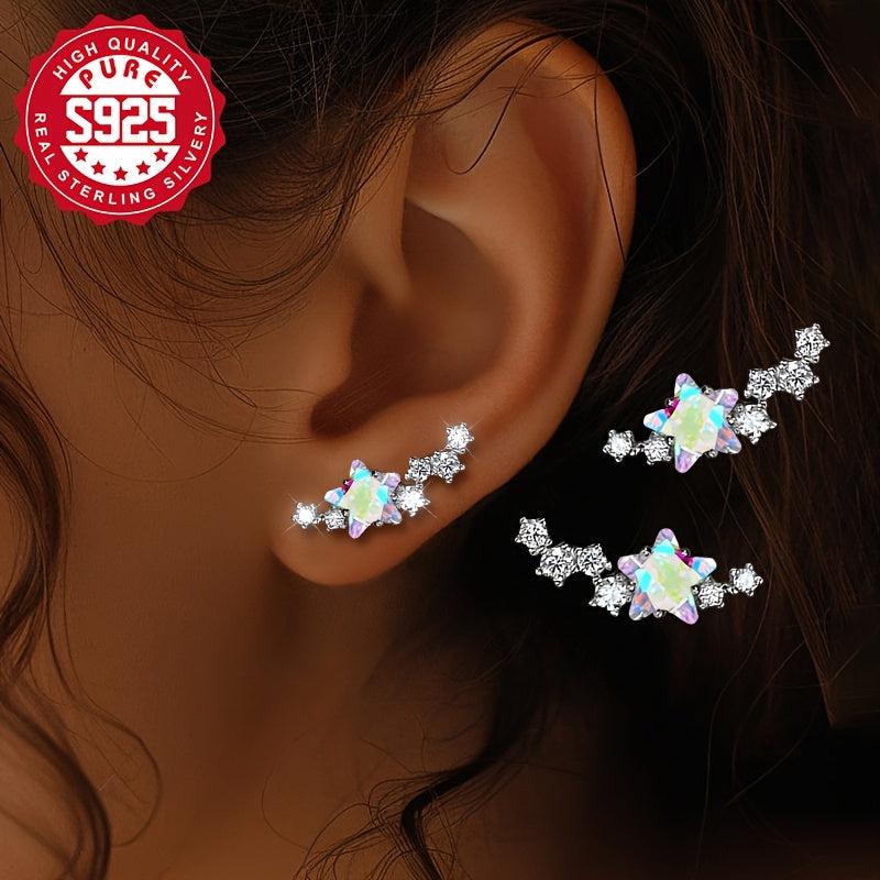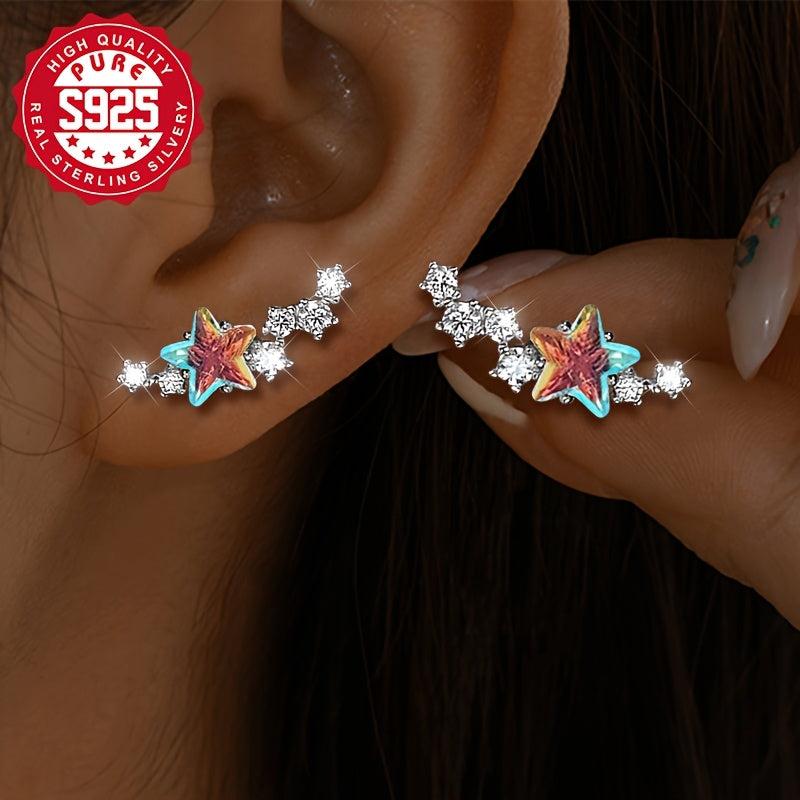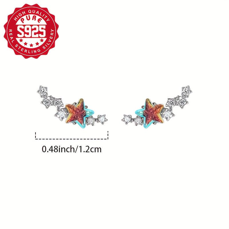 Elegant S925 silver earrings with AB star design and colorful synthetic zirconia. Perfect for parties and music festivals.