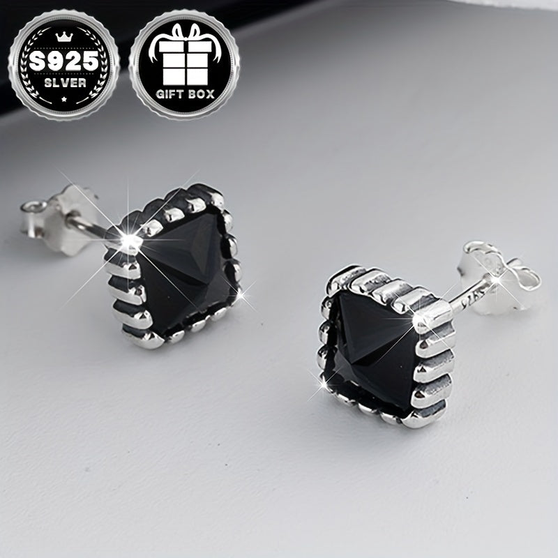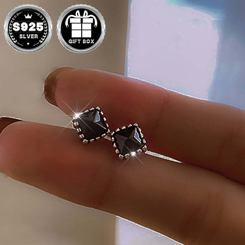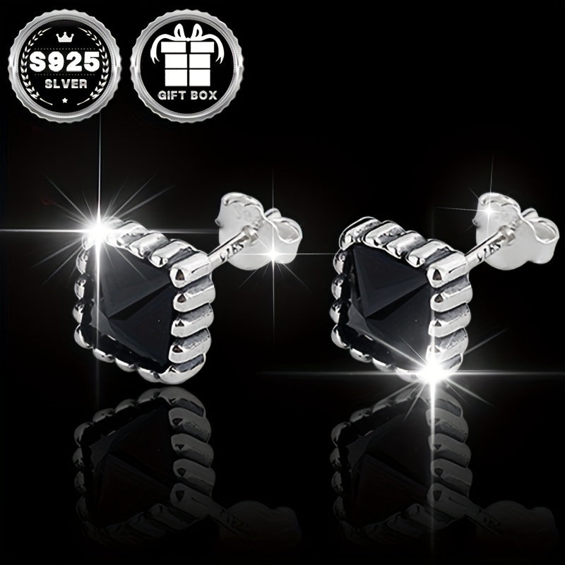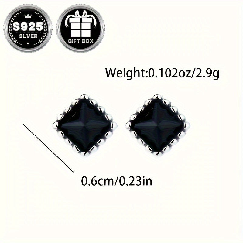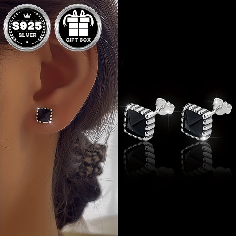 S925 Silver Zirconia Earrings Square Style Women 2.9g