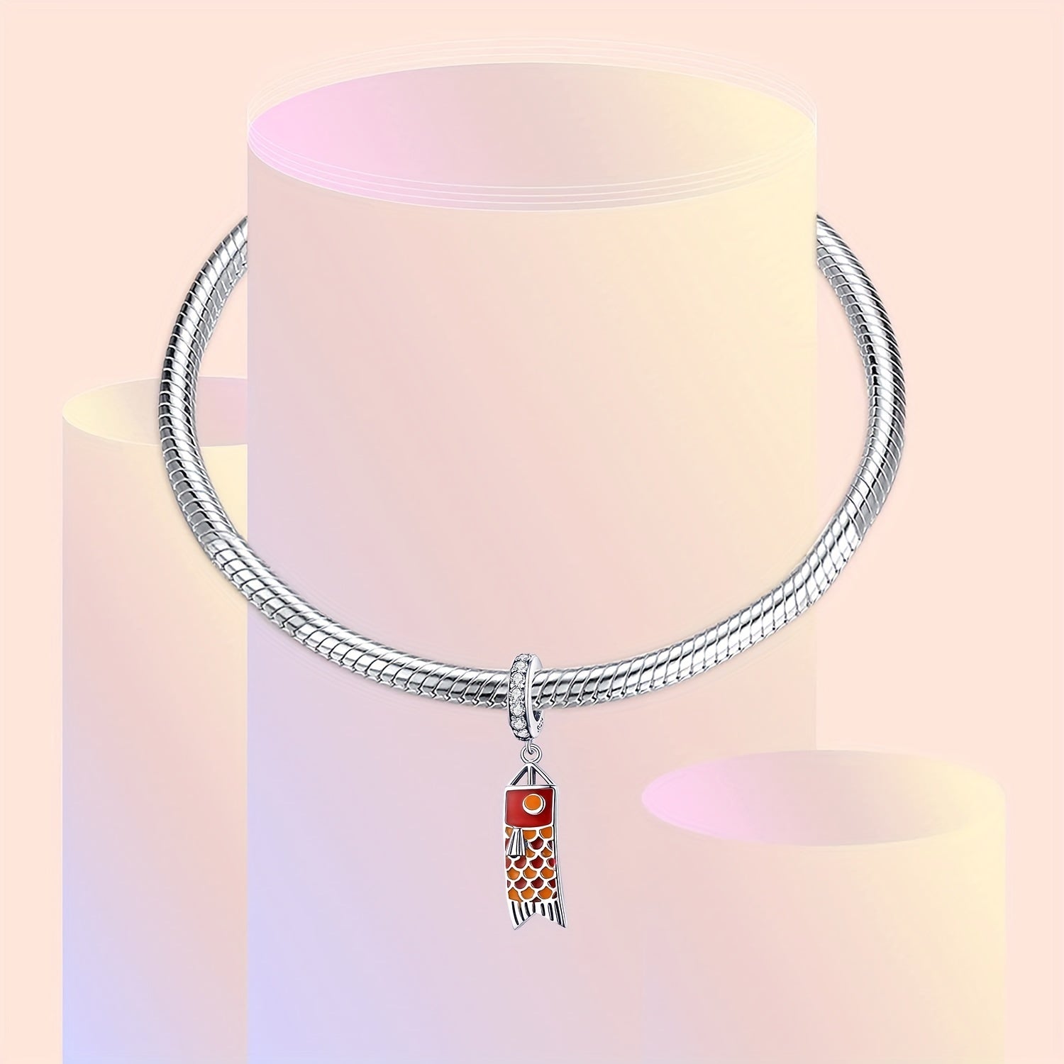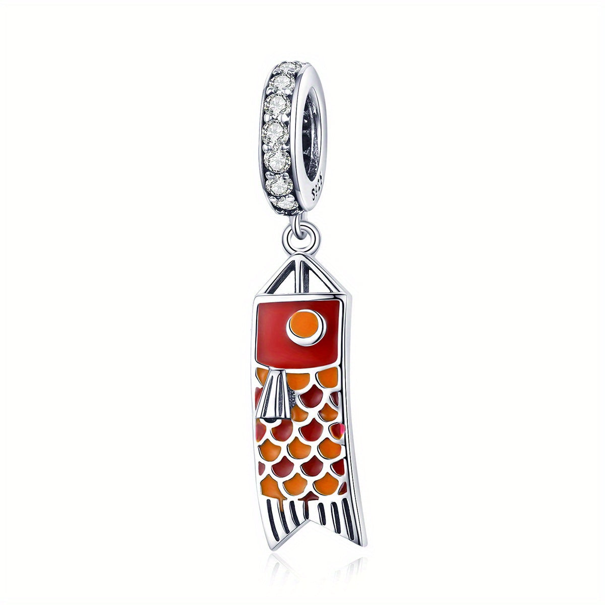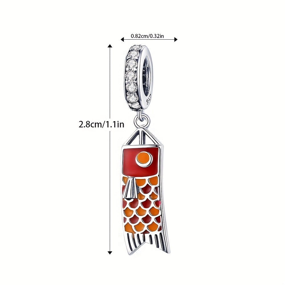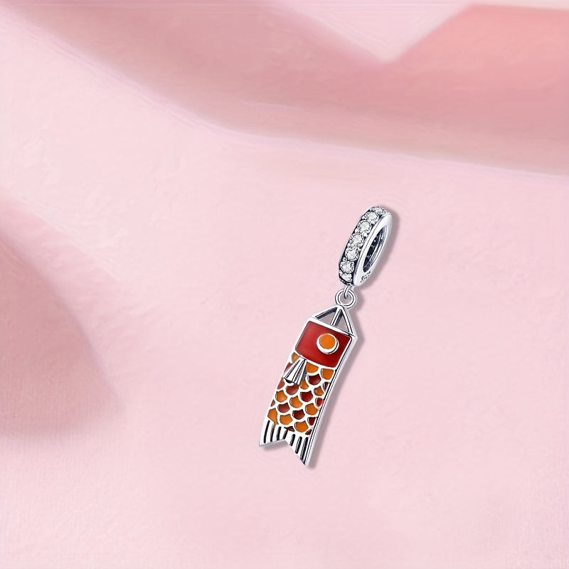 This S925 sterling silver charm pendant features a carp flag design, perfect for DIY bracelets and necklaces.