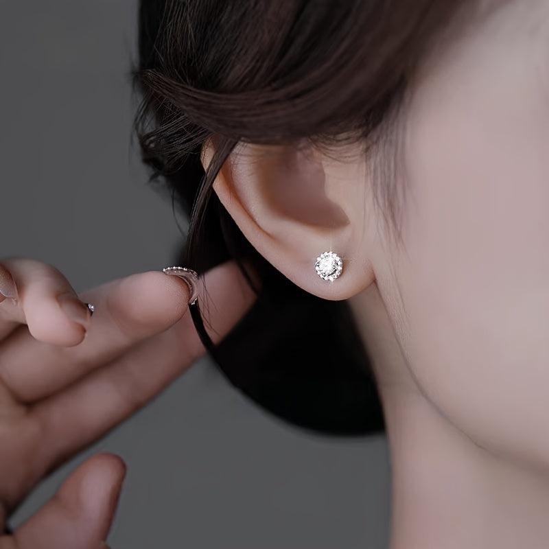 S925 Sterling Silver CZ Stud Earrings Hypoallergenic Small Advanced Versatile