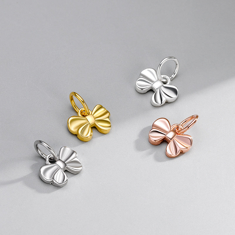 This small bow pendant is made of high-quality S925 sterling silver with a glossy finish, perfect for creating your own unique jewelry pieces.