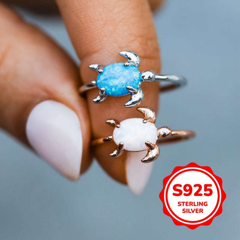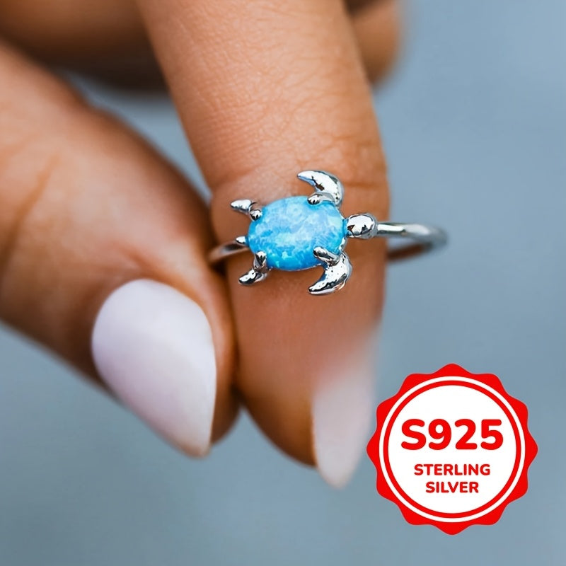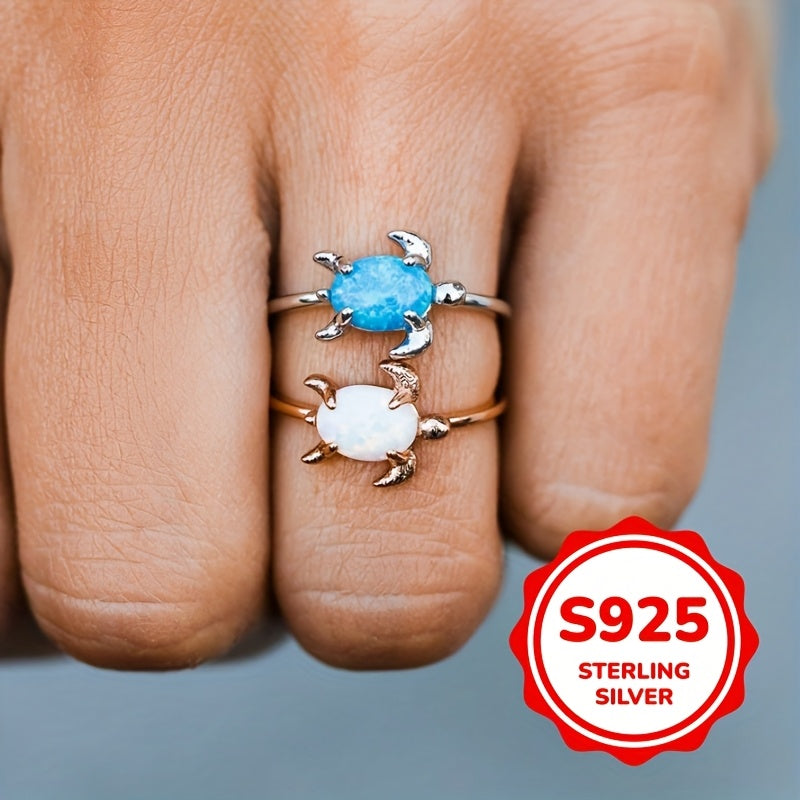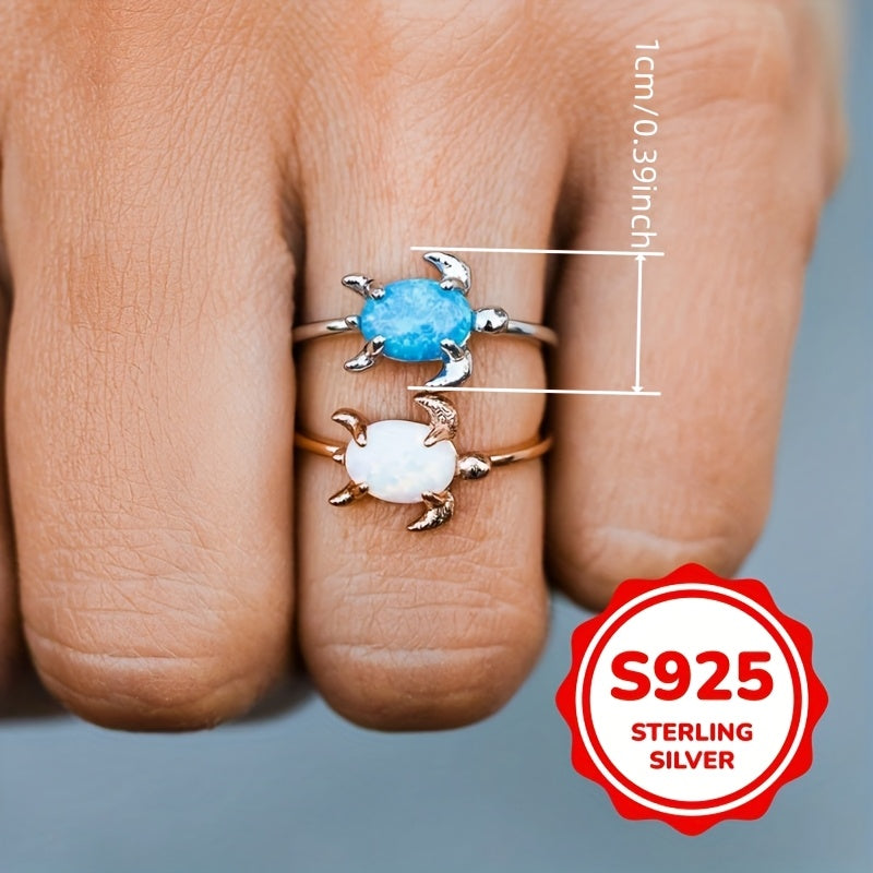 S925 Sterling Silver Turquoise Turtle Ring for Women