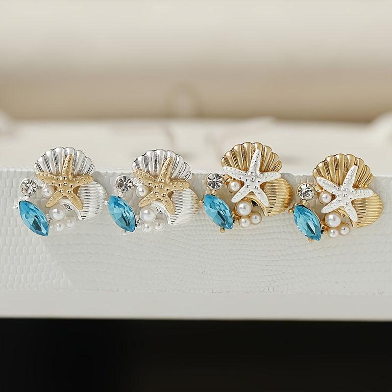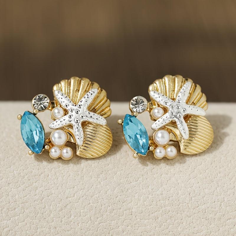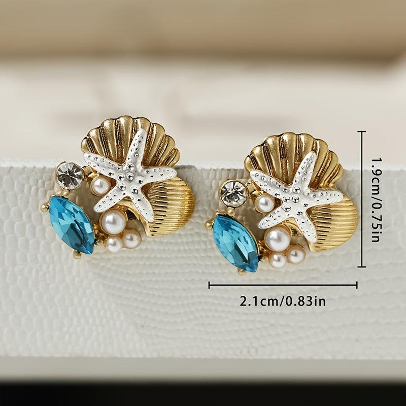 Adorn your ears with these versatile glass gemstone earrings featuring a starfish design, reminiscent of ocean treasures.