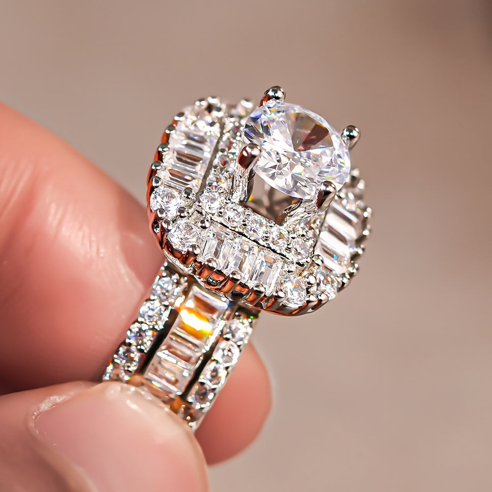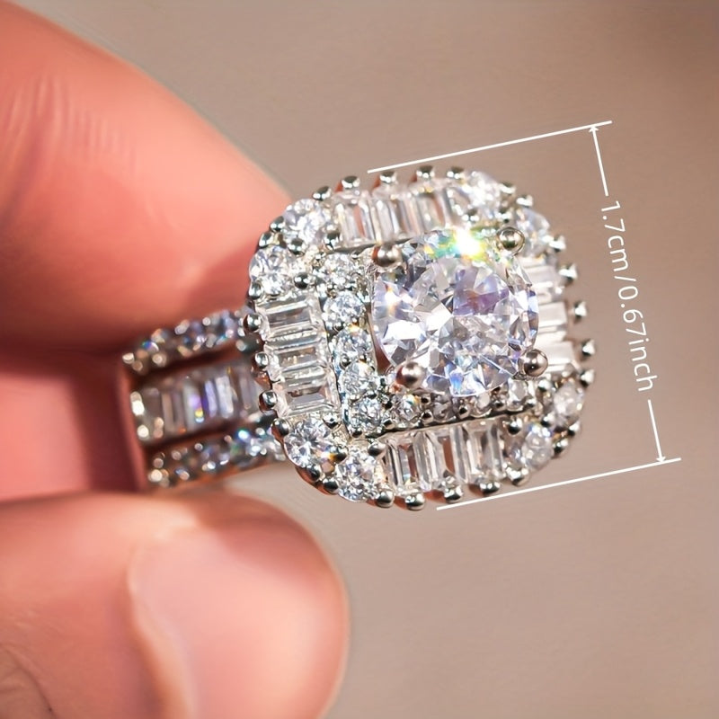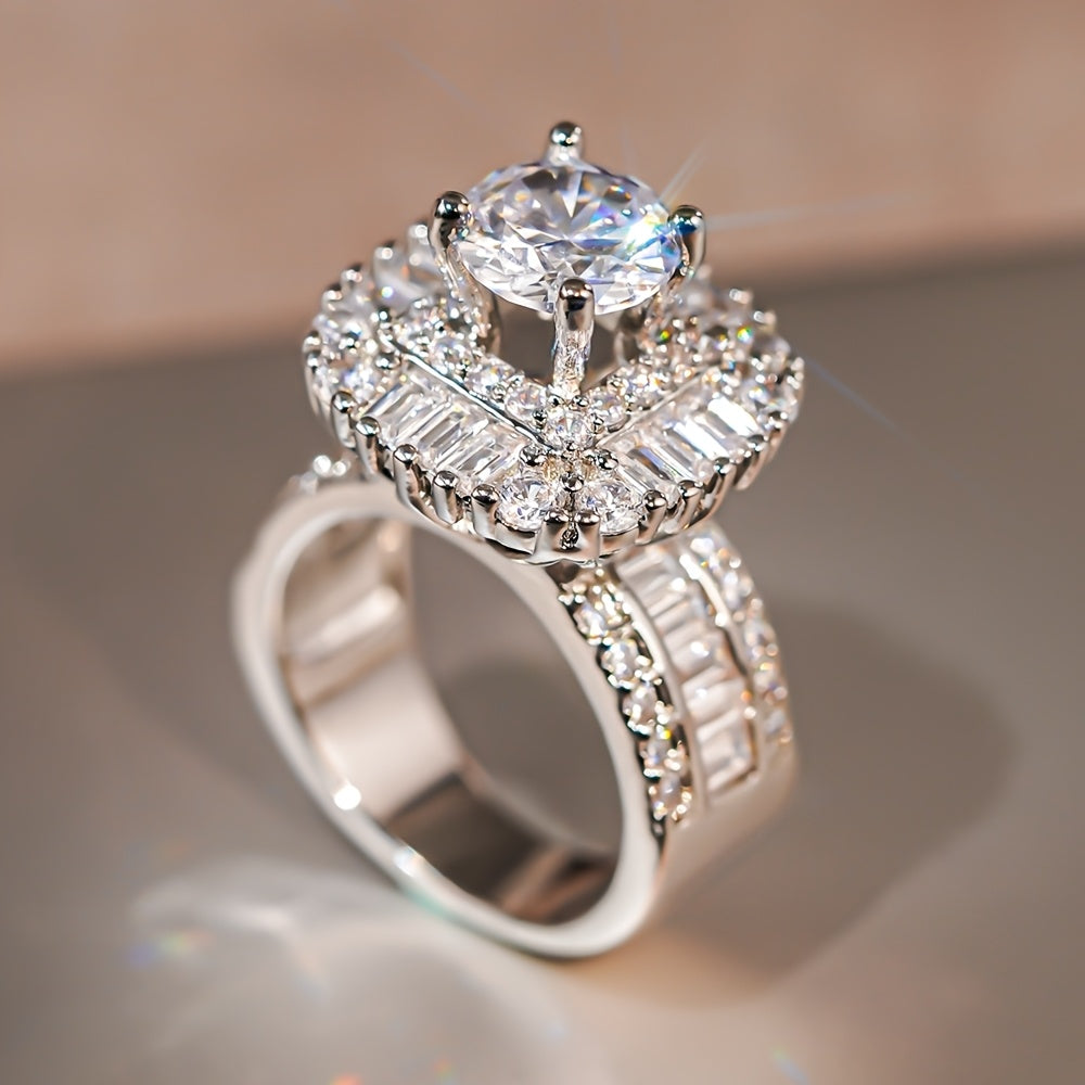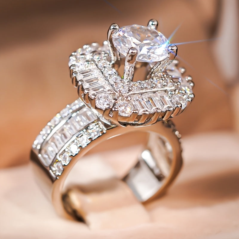 This stunning women's wedding ring features secret setting synthetic zirconia stones in an elegant engagement band. Perfect gift for her.