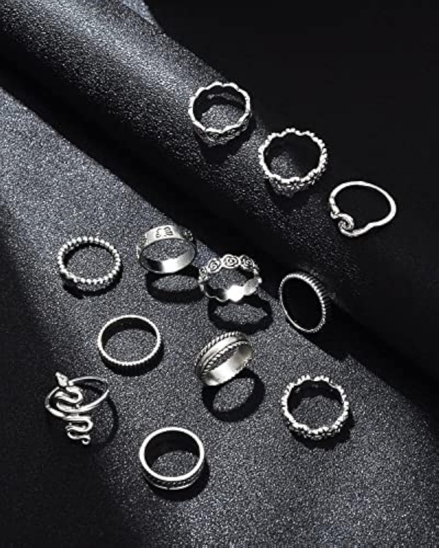 Elevate your style with this set of 13 boho midi finger rings. Crafted from high-quality metal, these rings are perfect for adding a touch of elegance to any outfit.
