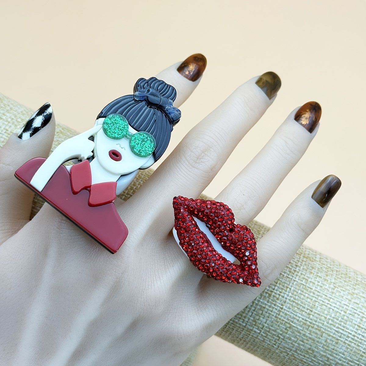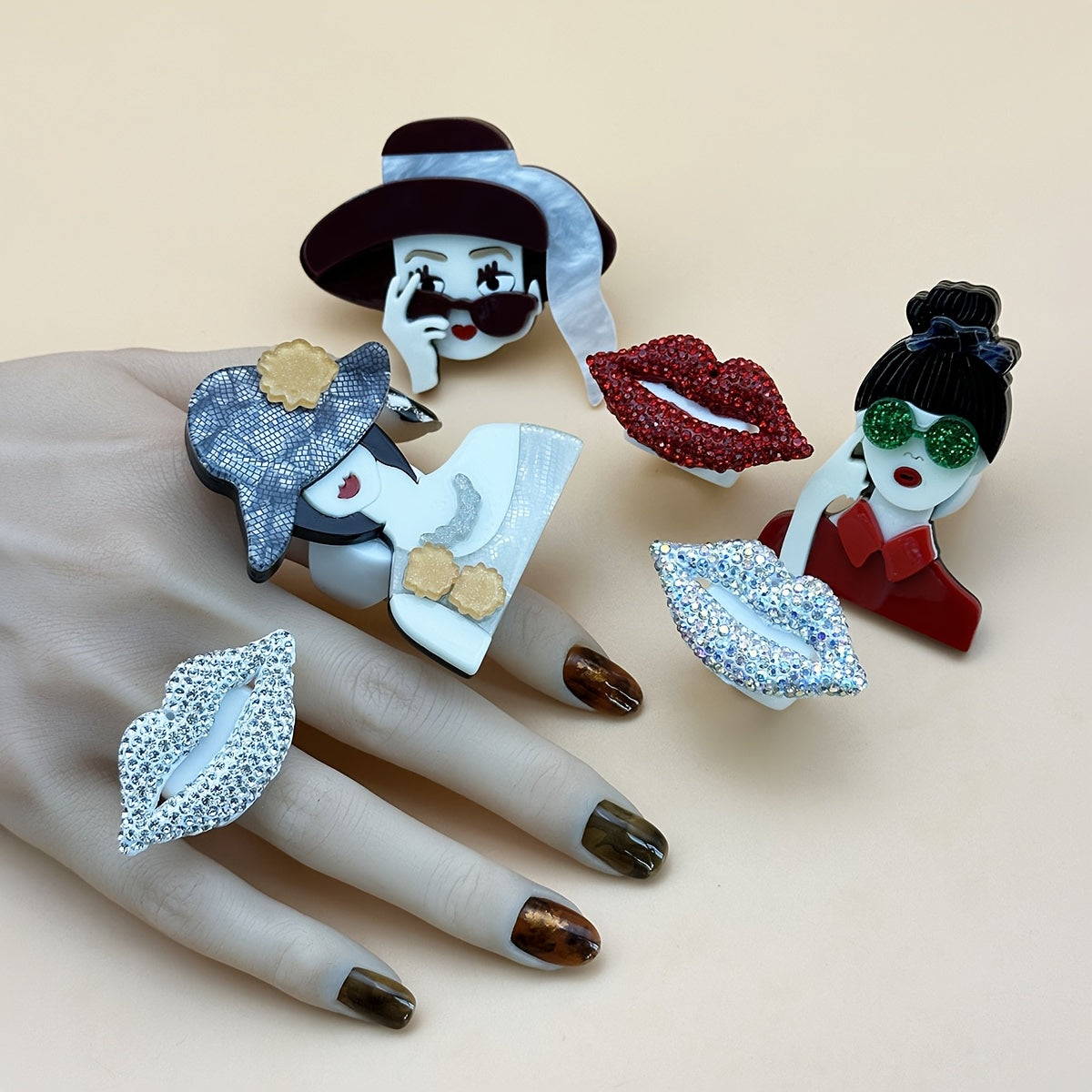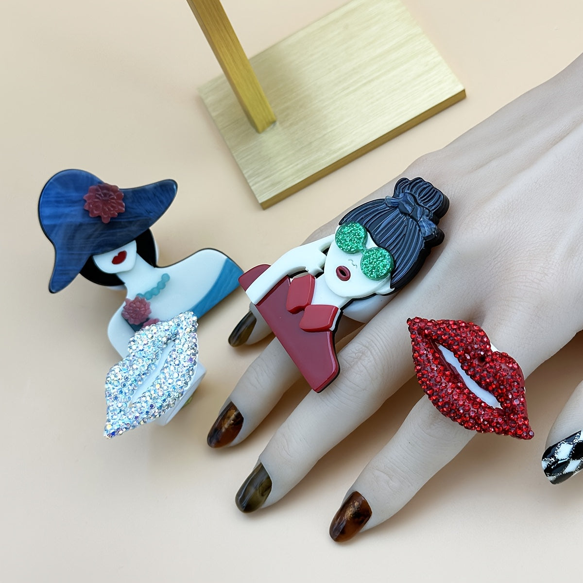 Add a touch of European style with these colorful rings featuring sexy lips portrait pattern. Perfect for daily wear, these decorative finger rings are suitable for both men and women.