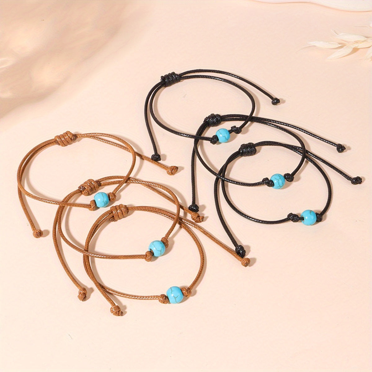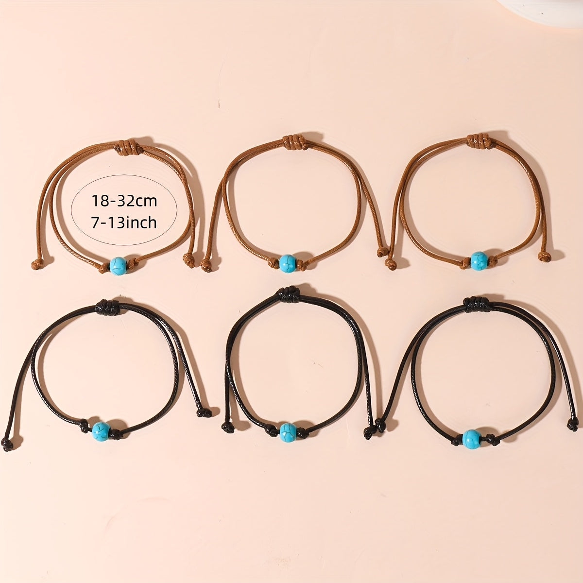 Vintage-inspired set of 6 minimalist woven bracelets in turquoise color, suitable for both men and women.