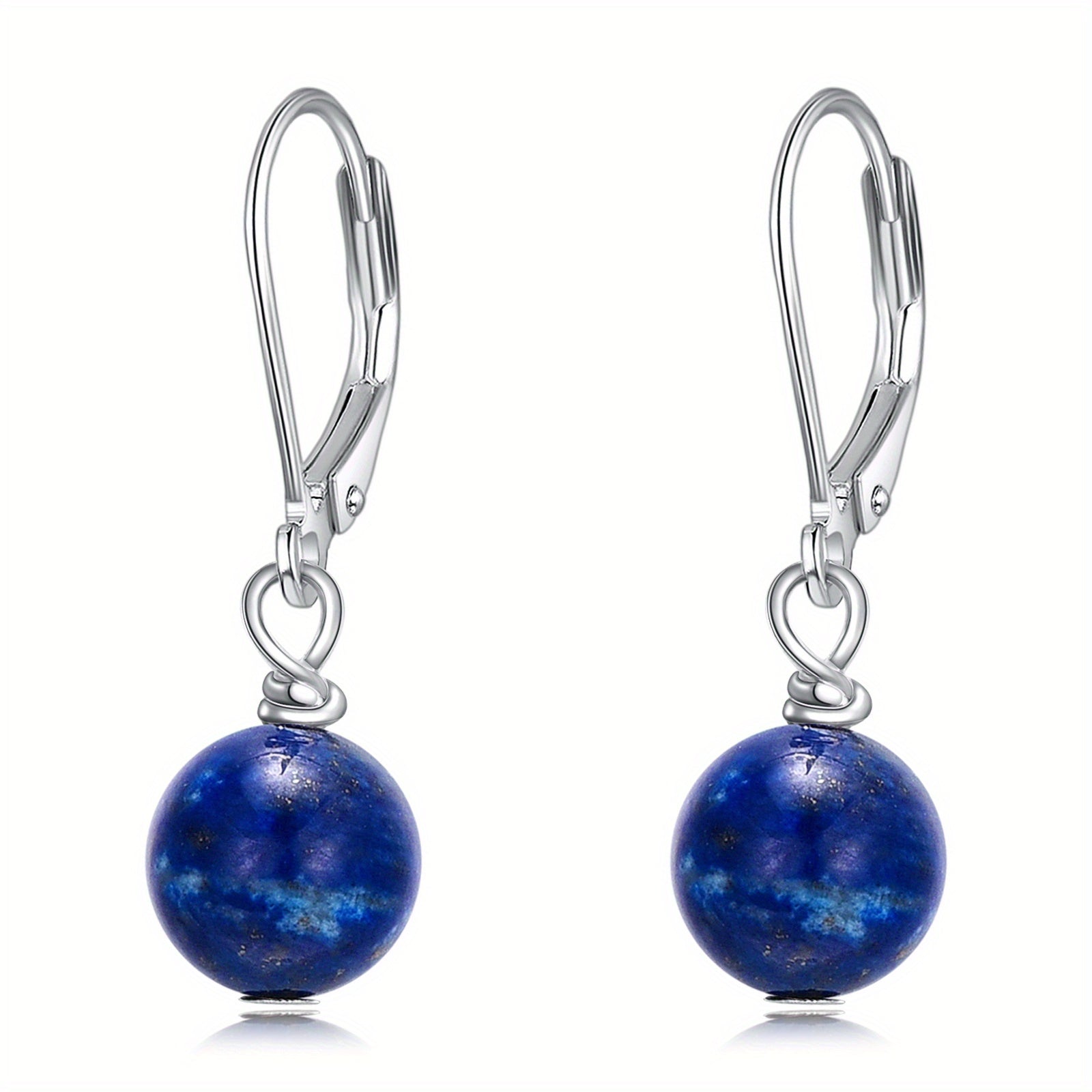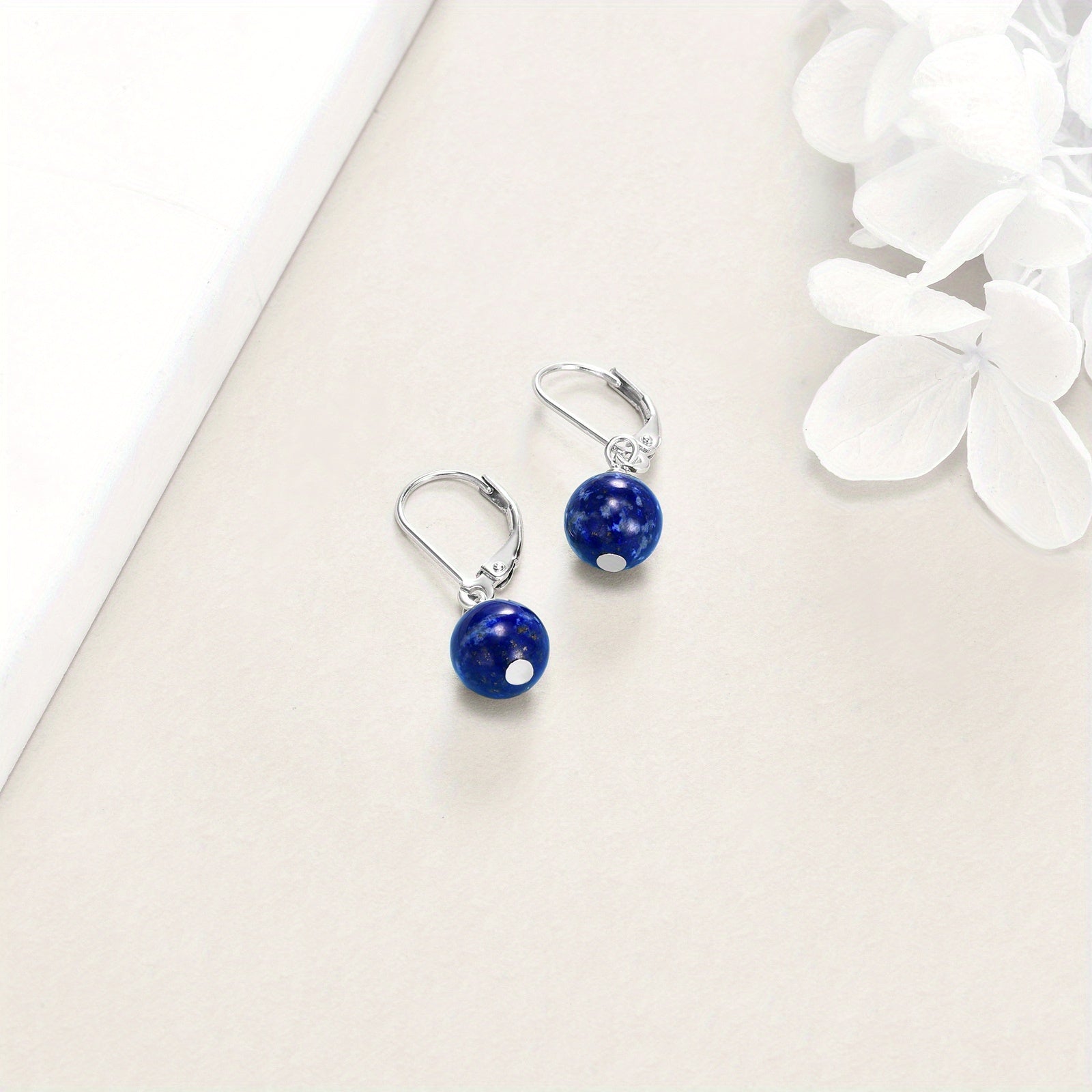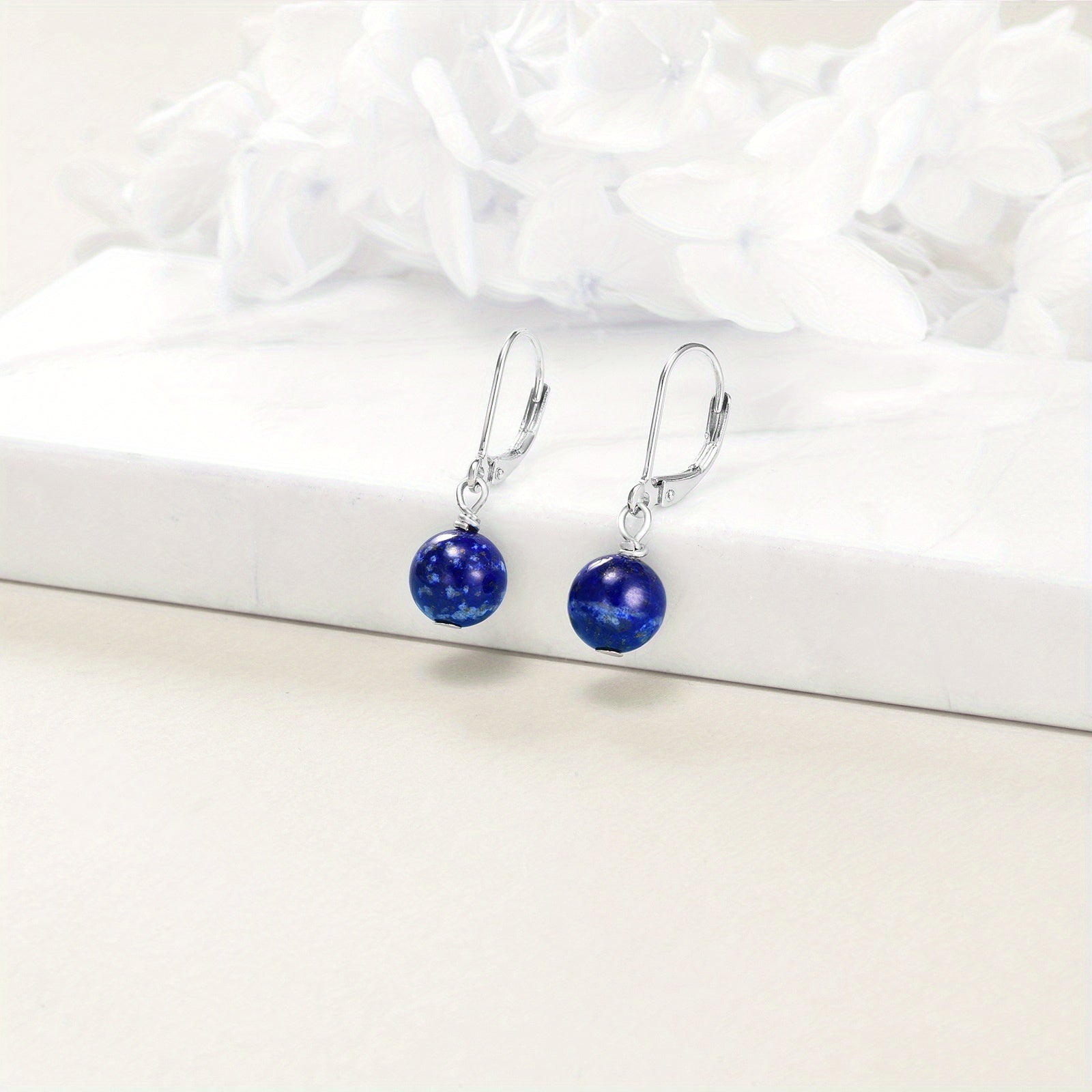 Silver Synthetic Lapis Lazuli Earrings Round Bead Dangle Leverback for Women