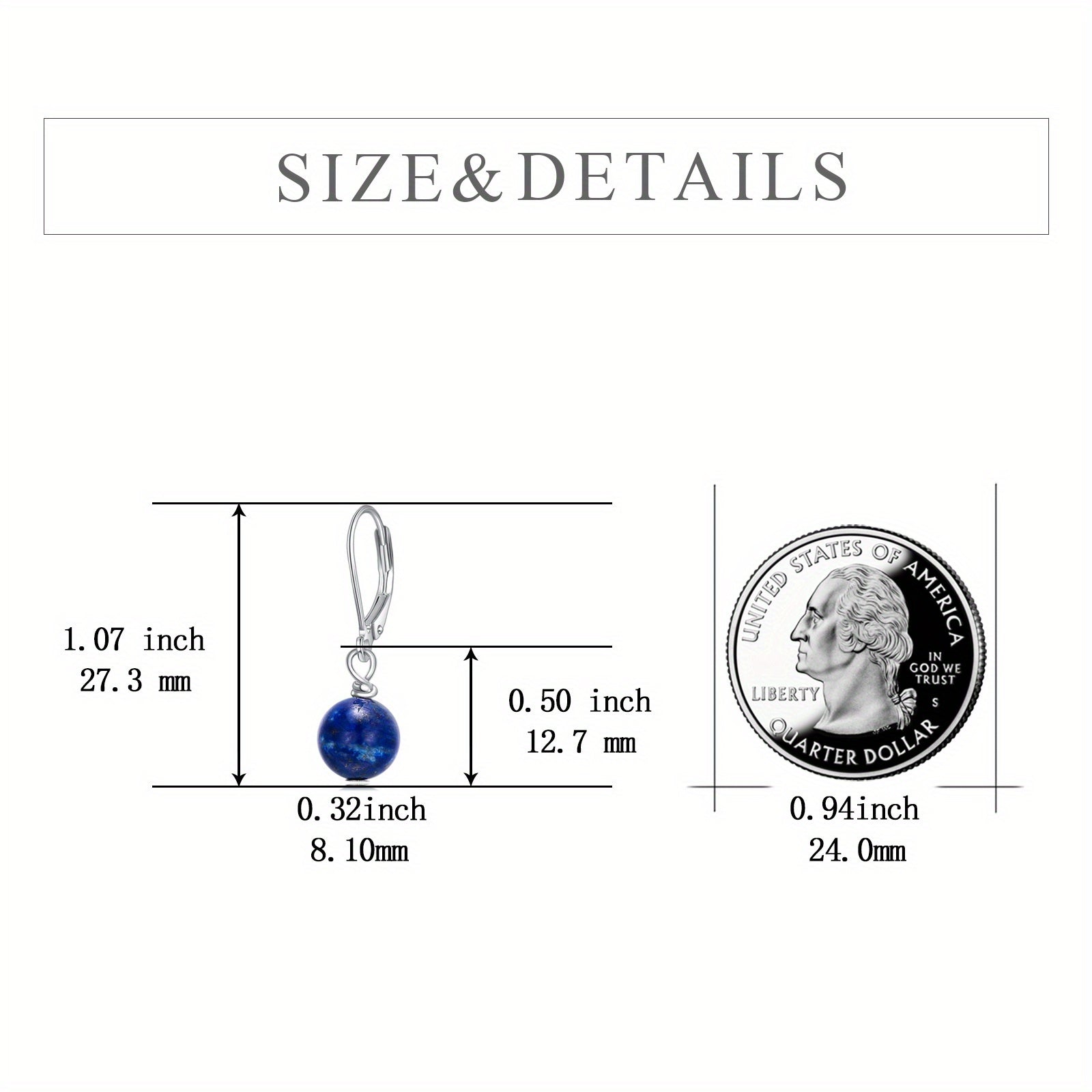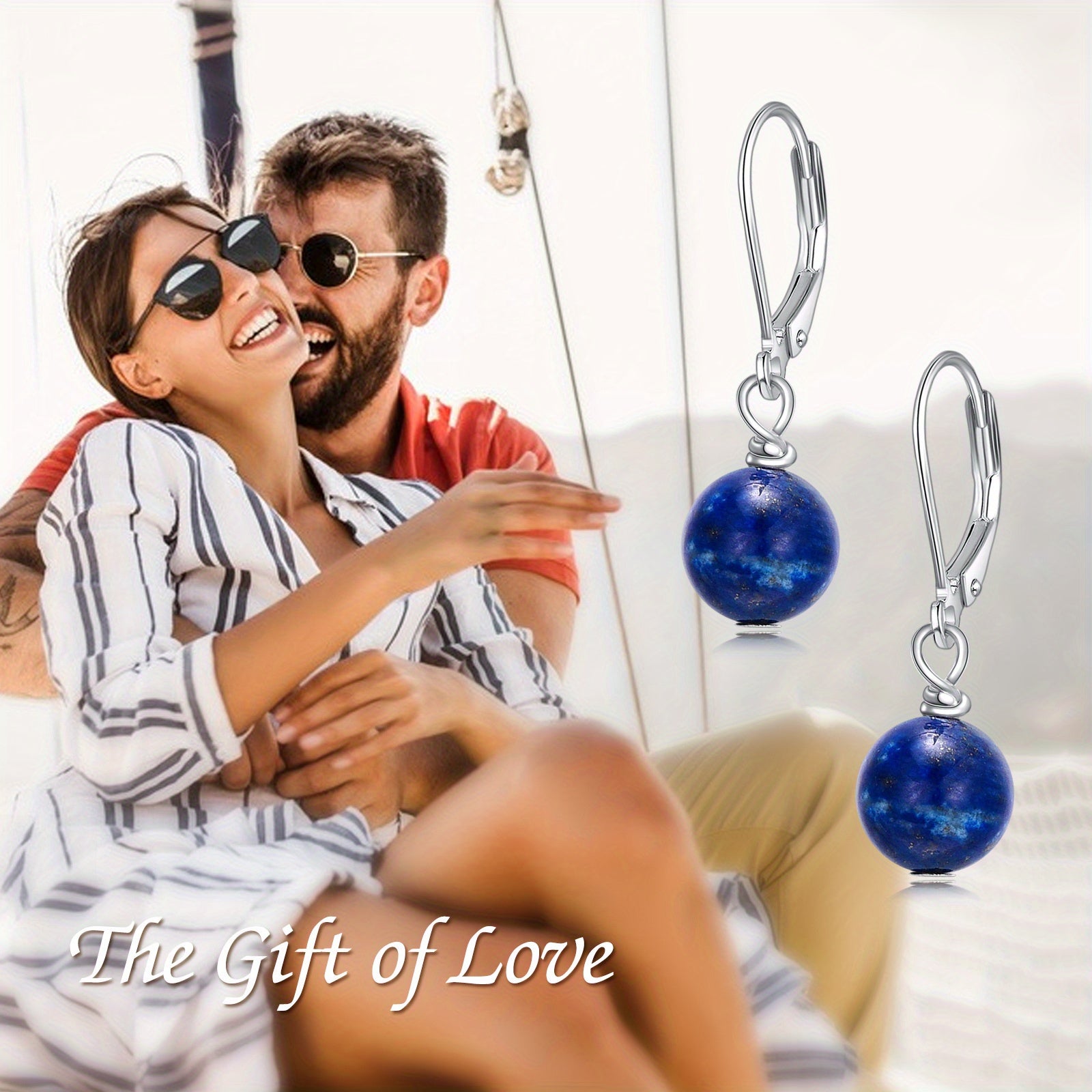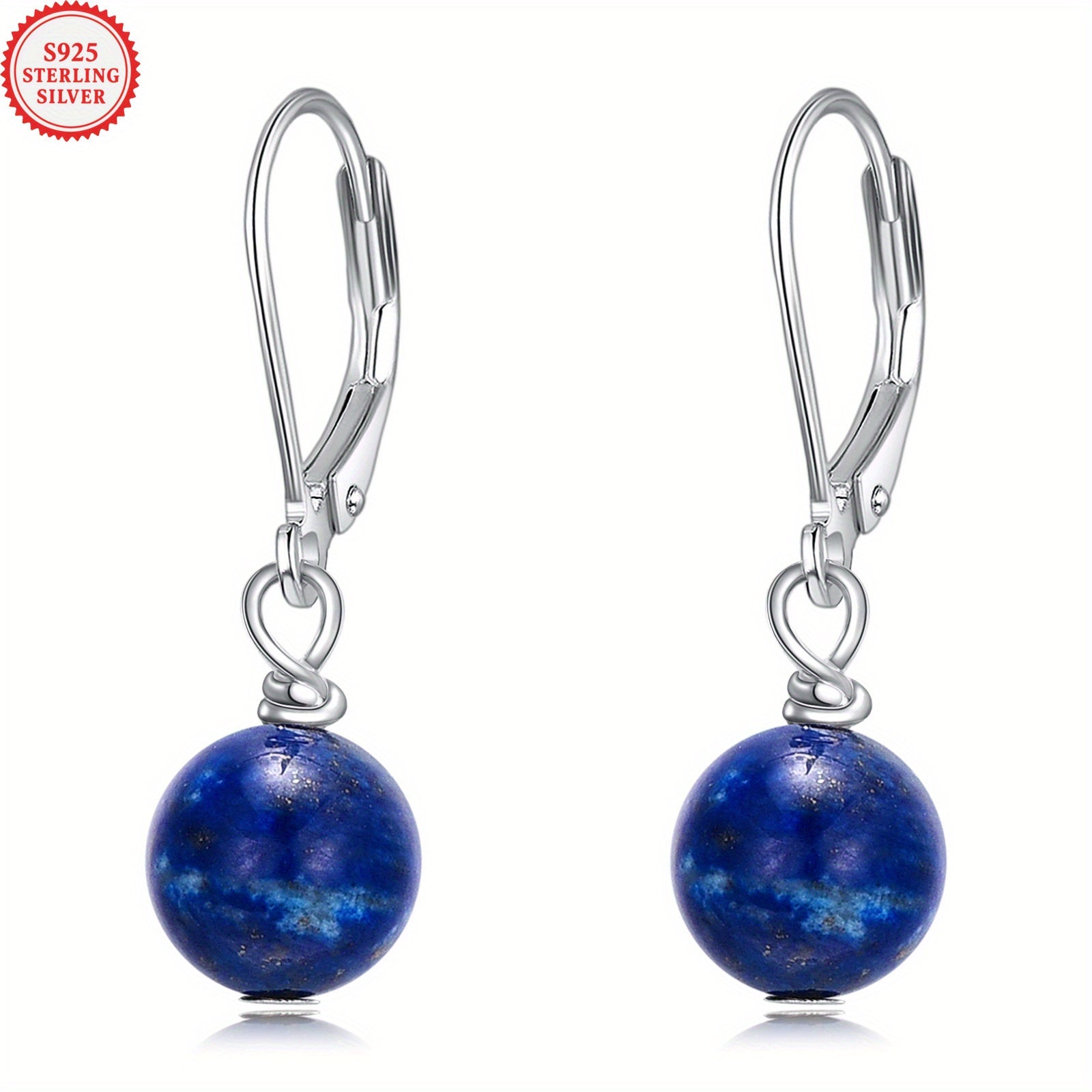 Silver Synthetic Lapis Lazuli Earrings Round Bead Dangle Leverback for Women