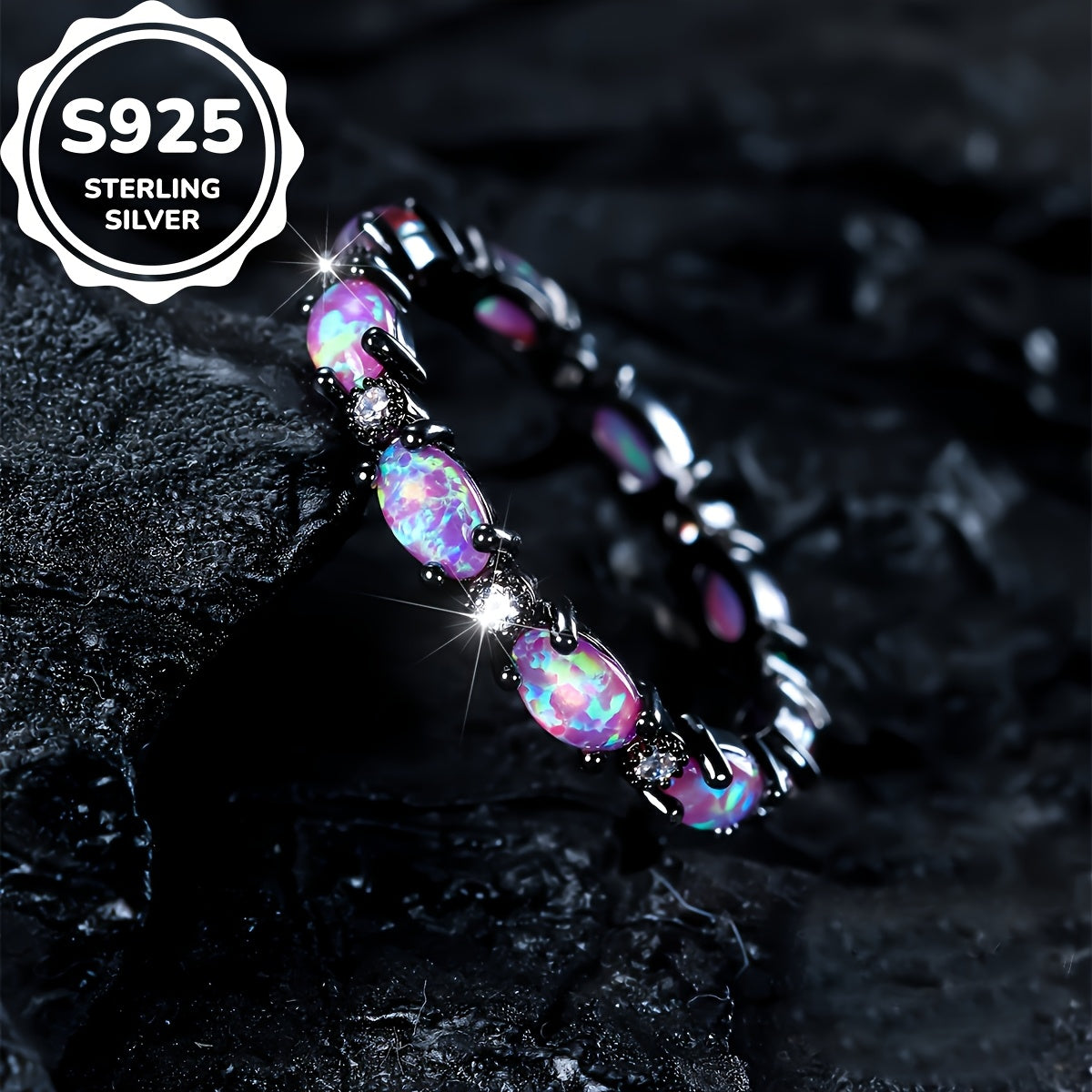 This unique and versatile ring features an oval purple Australian treasure set in a pure silvery S925 band. It is lightweight at 3g, making it suitable for daily wear or as a thoughtful gift.