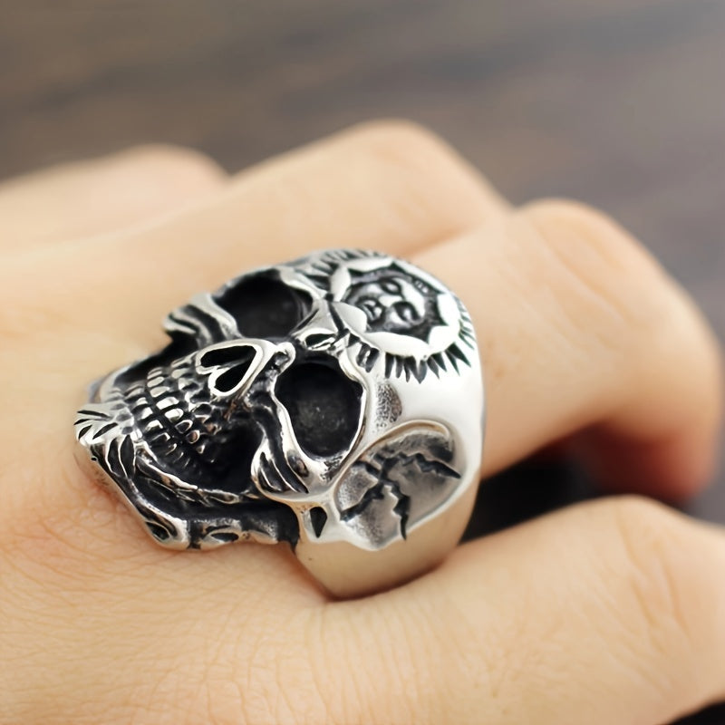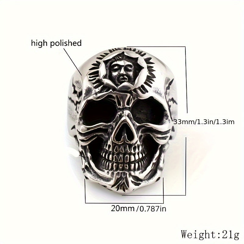 Make a statement with this stylish Skull Ghost ring. Crafted from durable stainless steel, this retro punk ring adds a touch of edginess to any outfit.