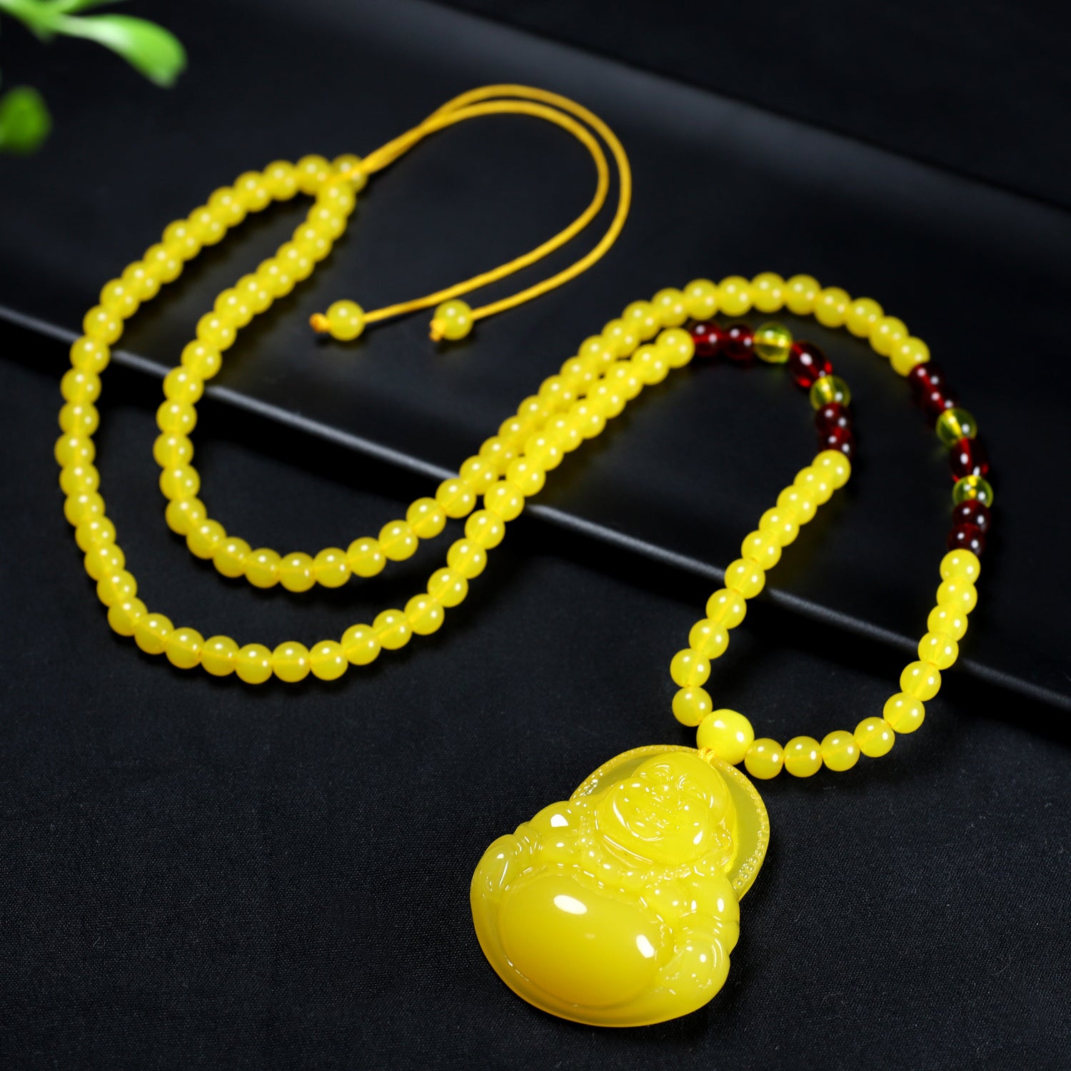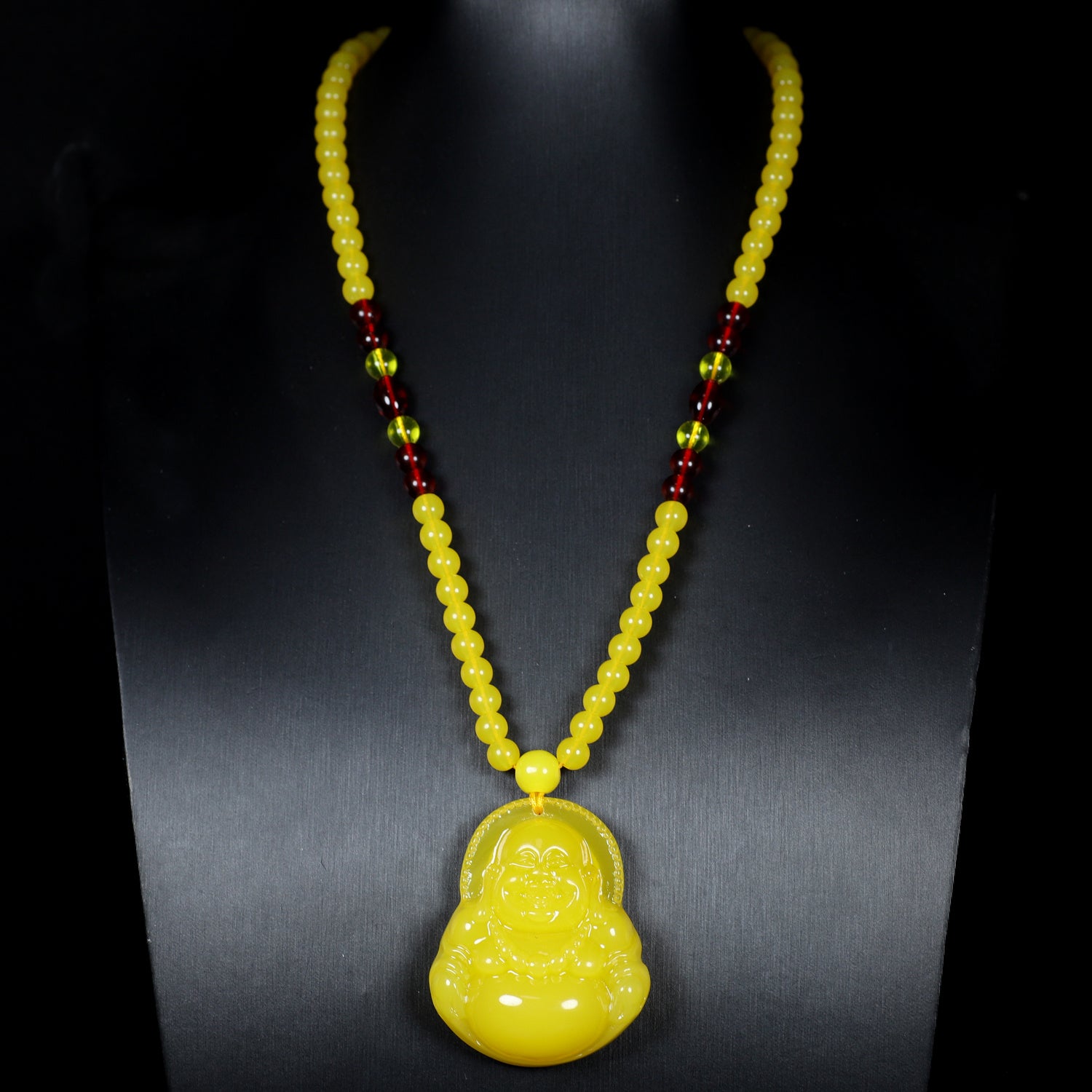 A unique necklace featuring festive beads and a smiling Buddha pendant. Perfect gift for men and women, handcrafted with care and style. Ideal gift for Mother's Day!