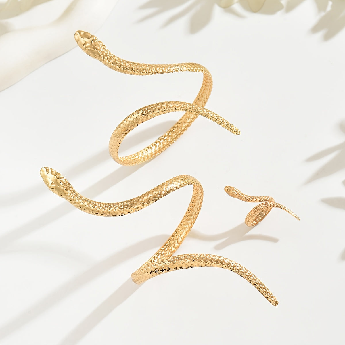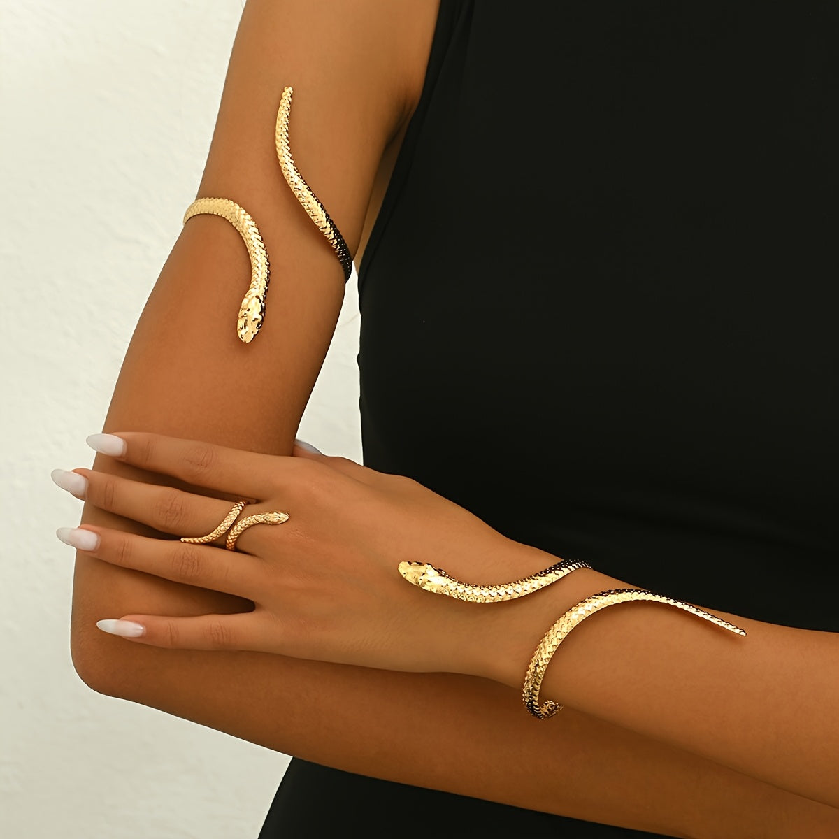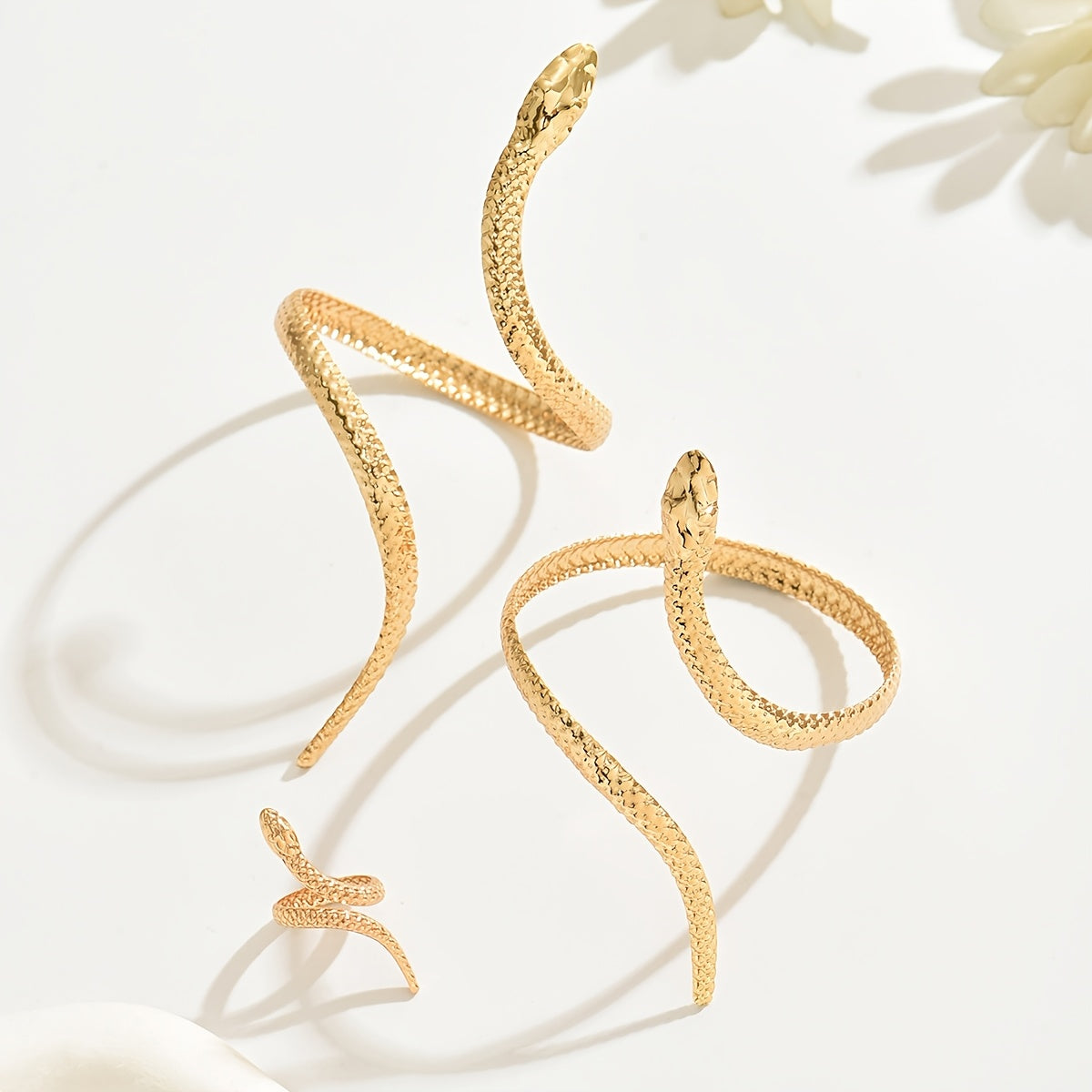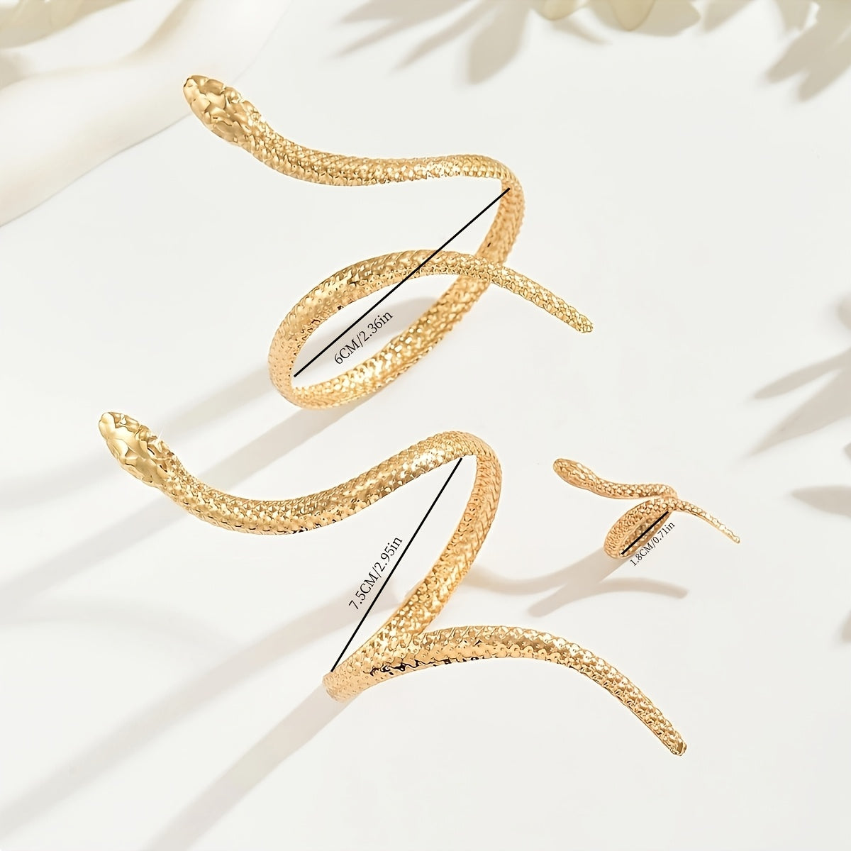 Complete your look with this three-piece women's jewelry set featuring a snake bracelet, bracelet, and ring. Perfect for parties and daily wear, this set exudes a sexy punk style.