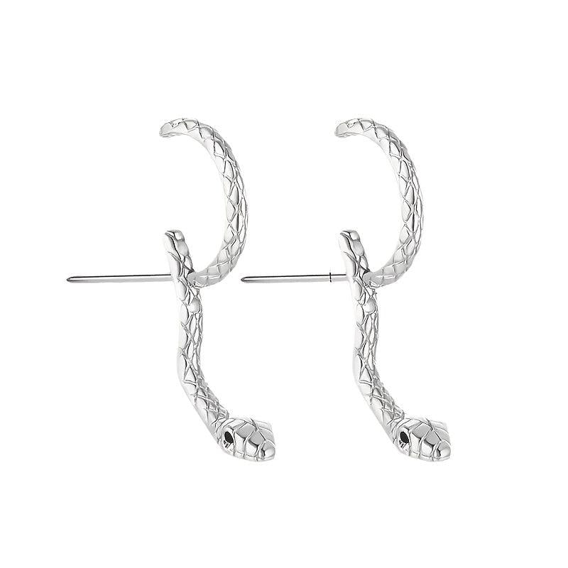 Make a statement with these unique snake-shaped circle earrings. Perfect for a punk and sexy style, these earrings are sure to turn heads.