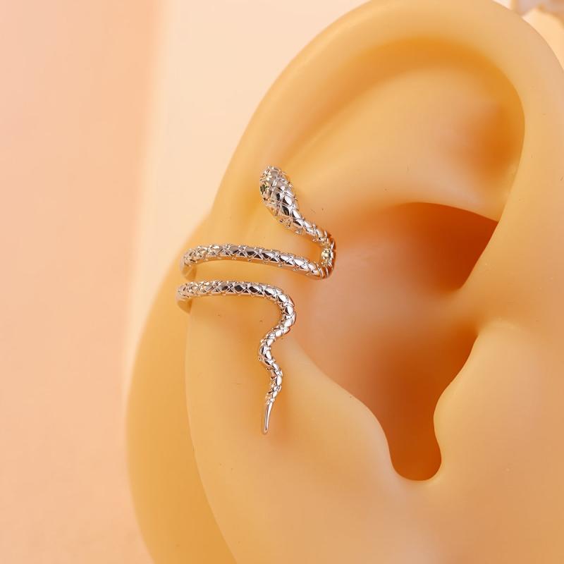 Add a touch of glamour with this stylish snake ear cuff featuring sparkling cubic zirconia stones. No piercing required, perfect for casual wear or as a gift.