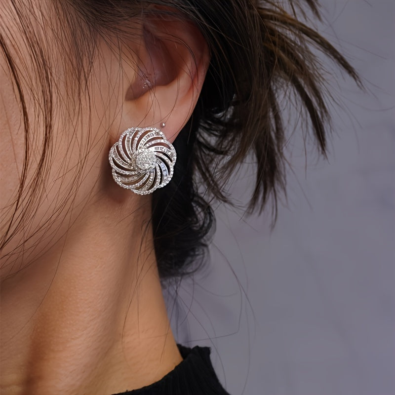 Add a touch of glamour to your look with these stunning flower stud earrings featuring sparkling cubic zirconia. Perfect for weddings, parties, or everyday wear.