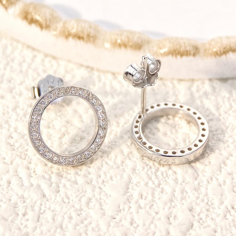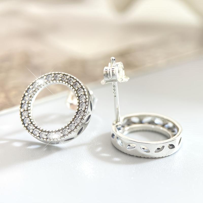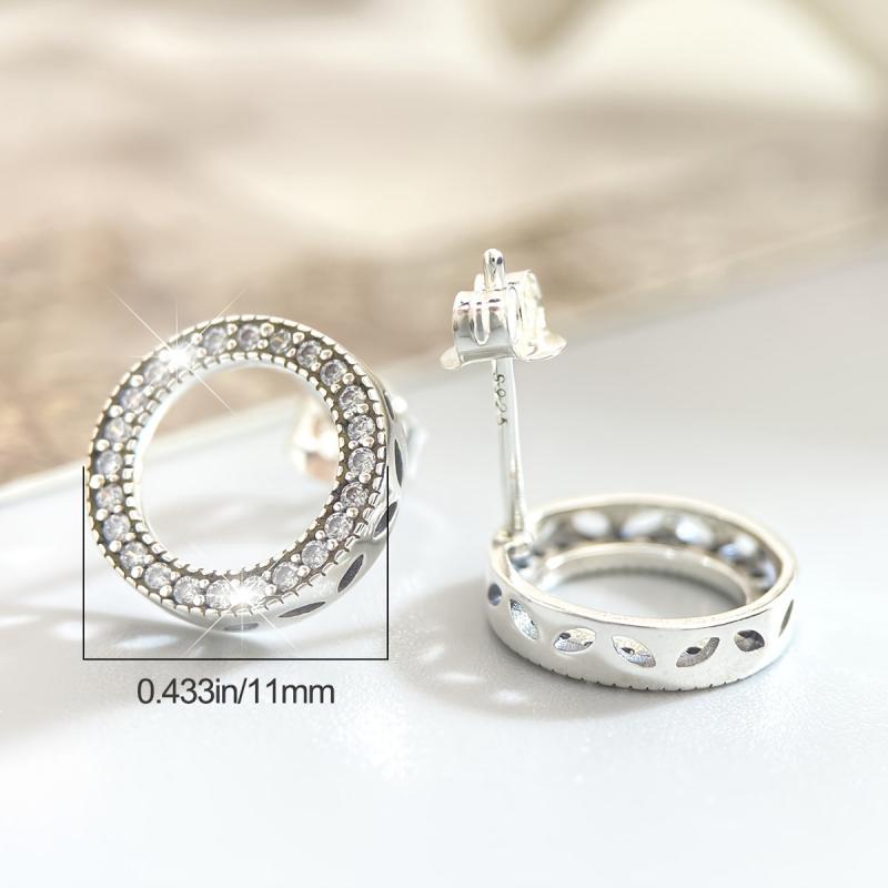Sparkling Synthetic Zirconia Round Stud Earrings S925 Silvery Golden Earrings