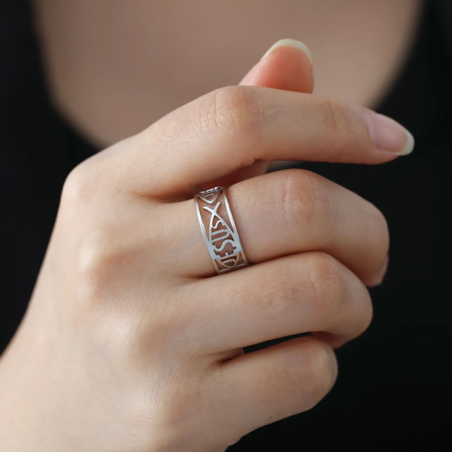 Embrace your faith with this intricately designed Jesus fish ring. Crafted from stainless steel with 18K plating, this bohemian wave ring is ideal for men and women seeking spiritual connection.