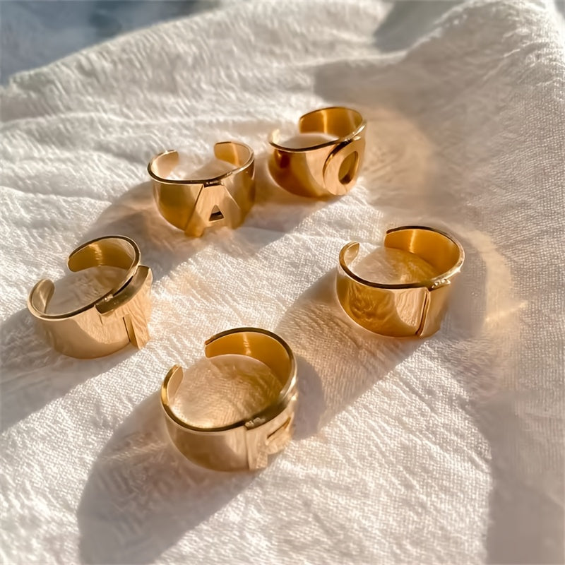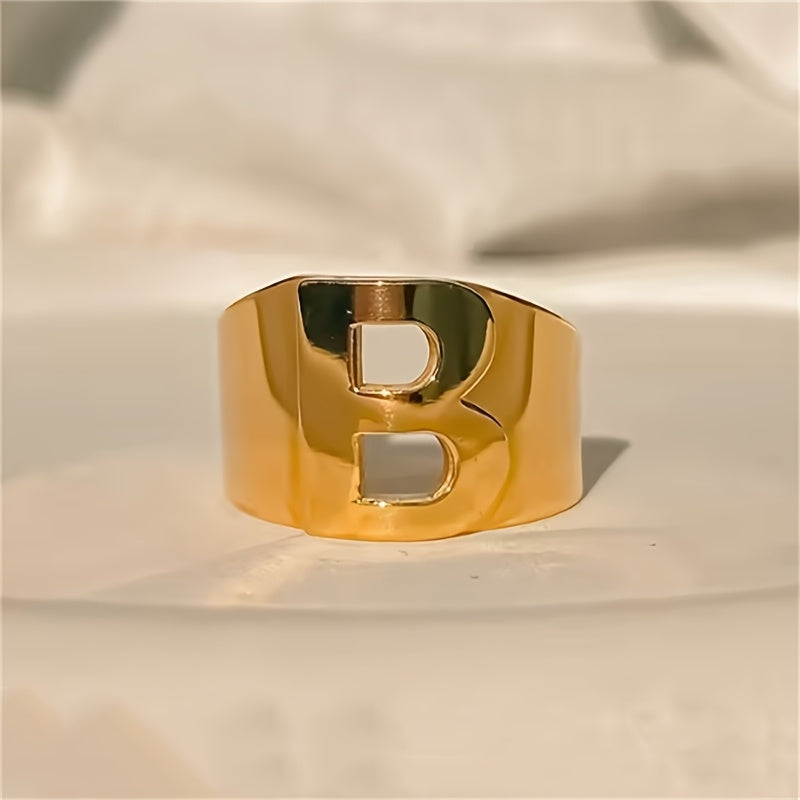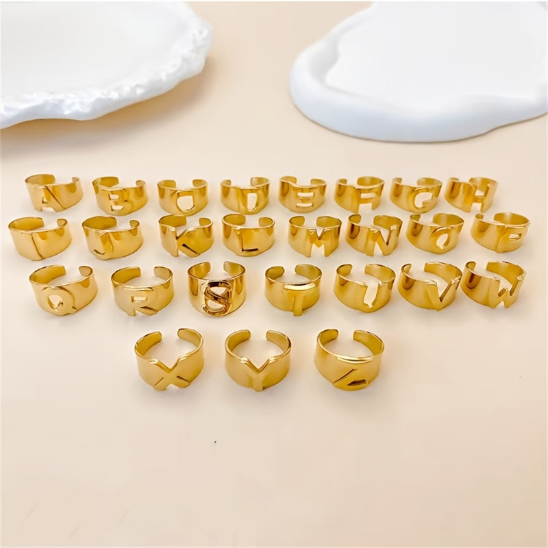 This stylish and unique stainless steel ring features 26 English letters, making it perfect for representing names. The open design is suitable for couples, creating a personalized touch.