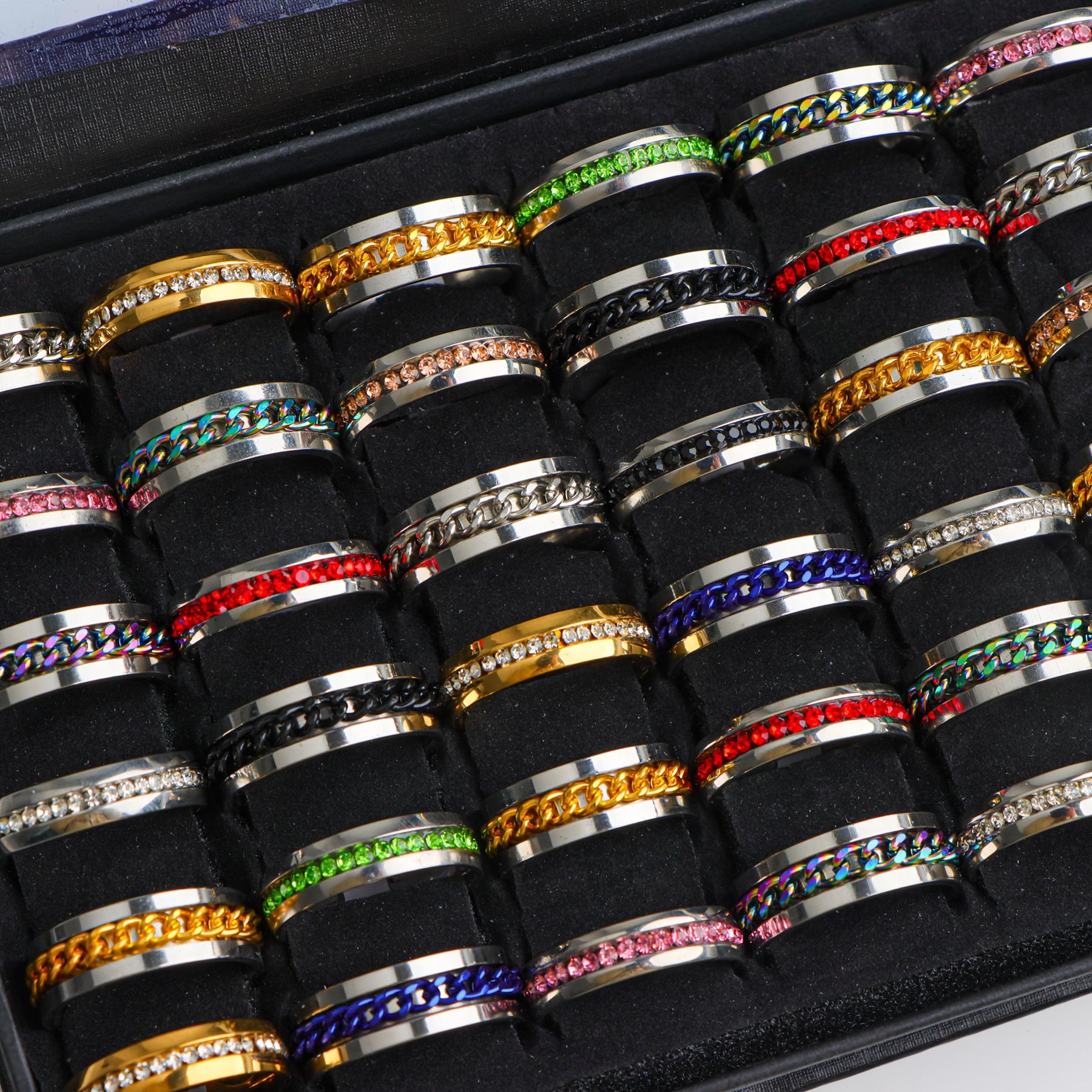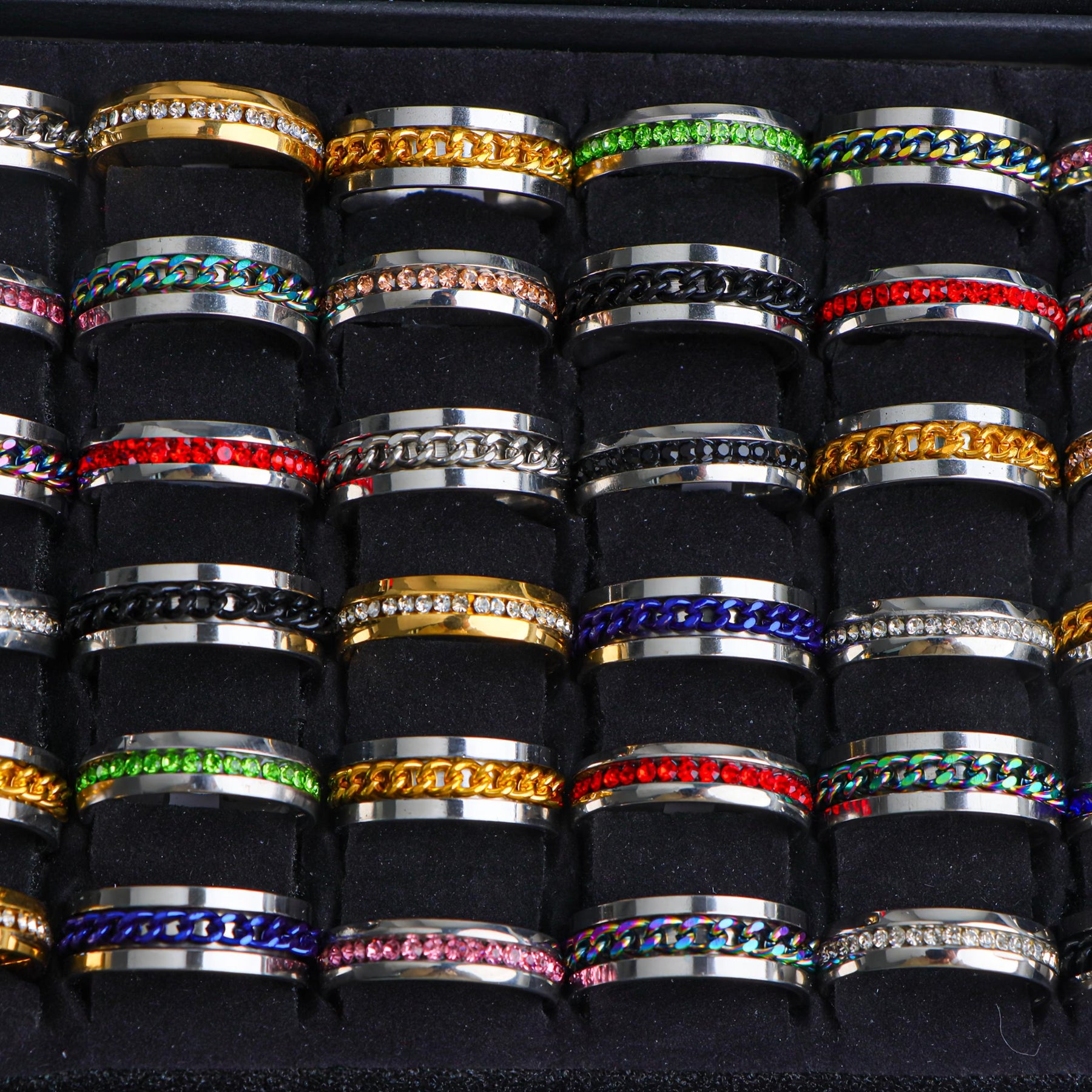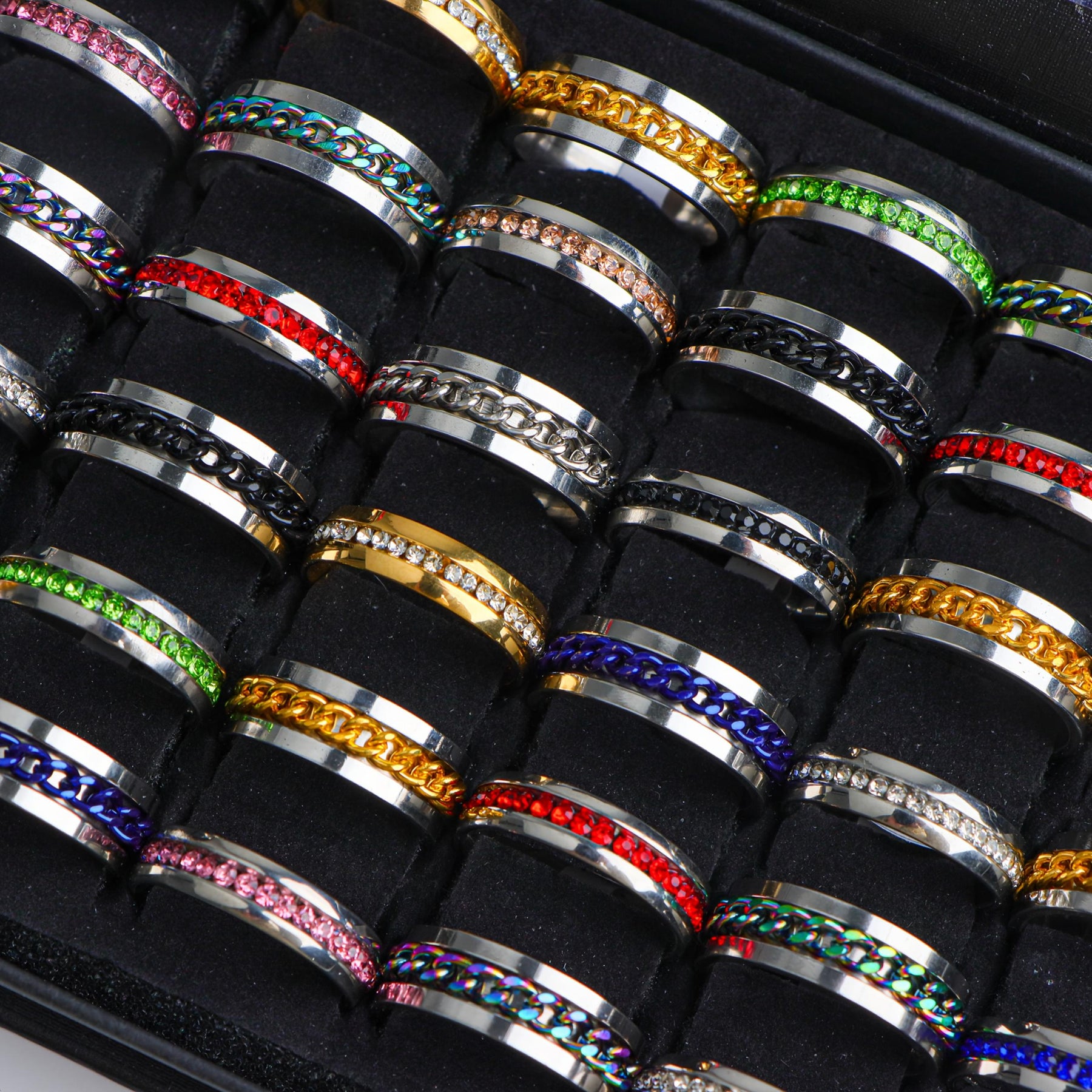 This pack includes 10-20 minimalist stainless steel rotating rings with rhinestone chains. Perfect for men and women to wear daily or at parties. A great gift option for someone who loves minimalist jewelry.