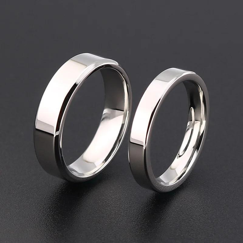 Elevate your look with these stylish stainless steel rings. The set includes two rings, one 4mm wide and the other 6mm wide, both featuring a highly polished finish. These classic unisex rings are perfect accessories for any occasion.