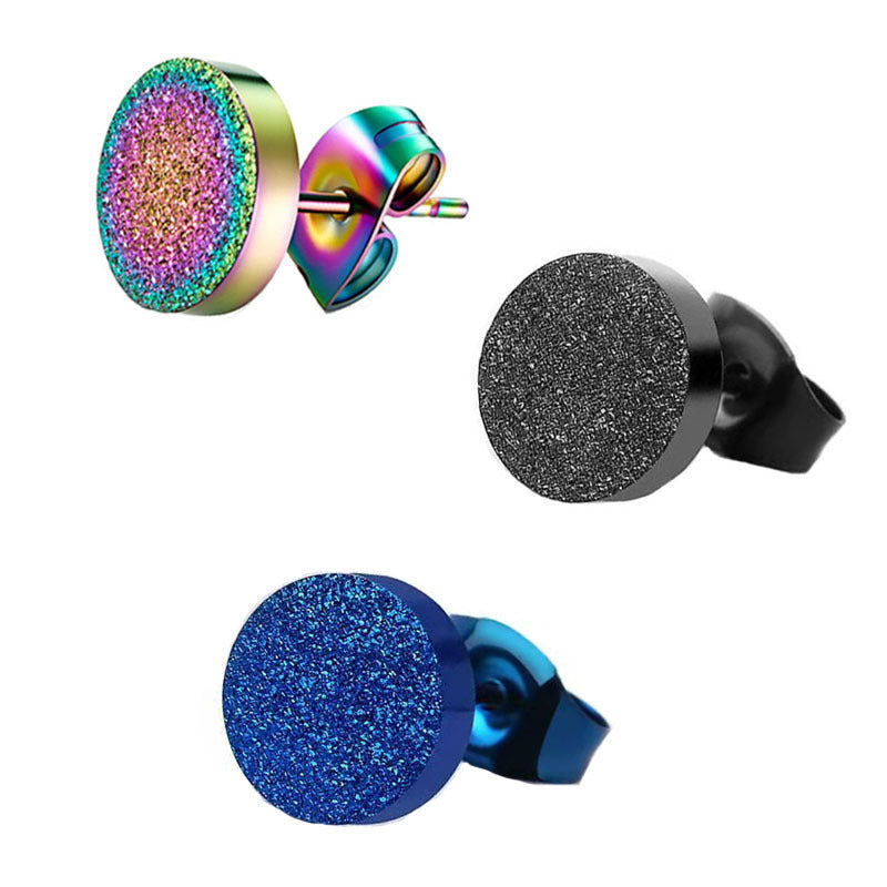 Elevate your style with these stainless steel sandblasting plated earrings featuring a matte pearl sand finish. Perfect for men who appreciate unique accessories.