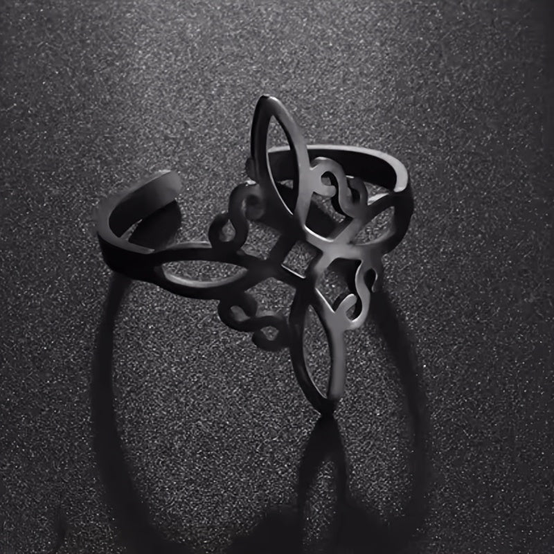 Embrace the power of the Witch Knot with this stainless steel open ring. Perfect gift for men and women who appreciate Viking talismanic jewelry.