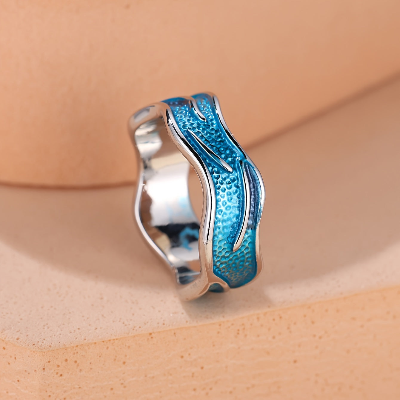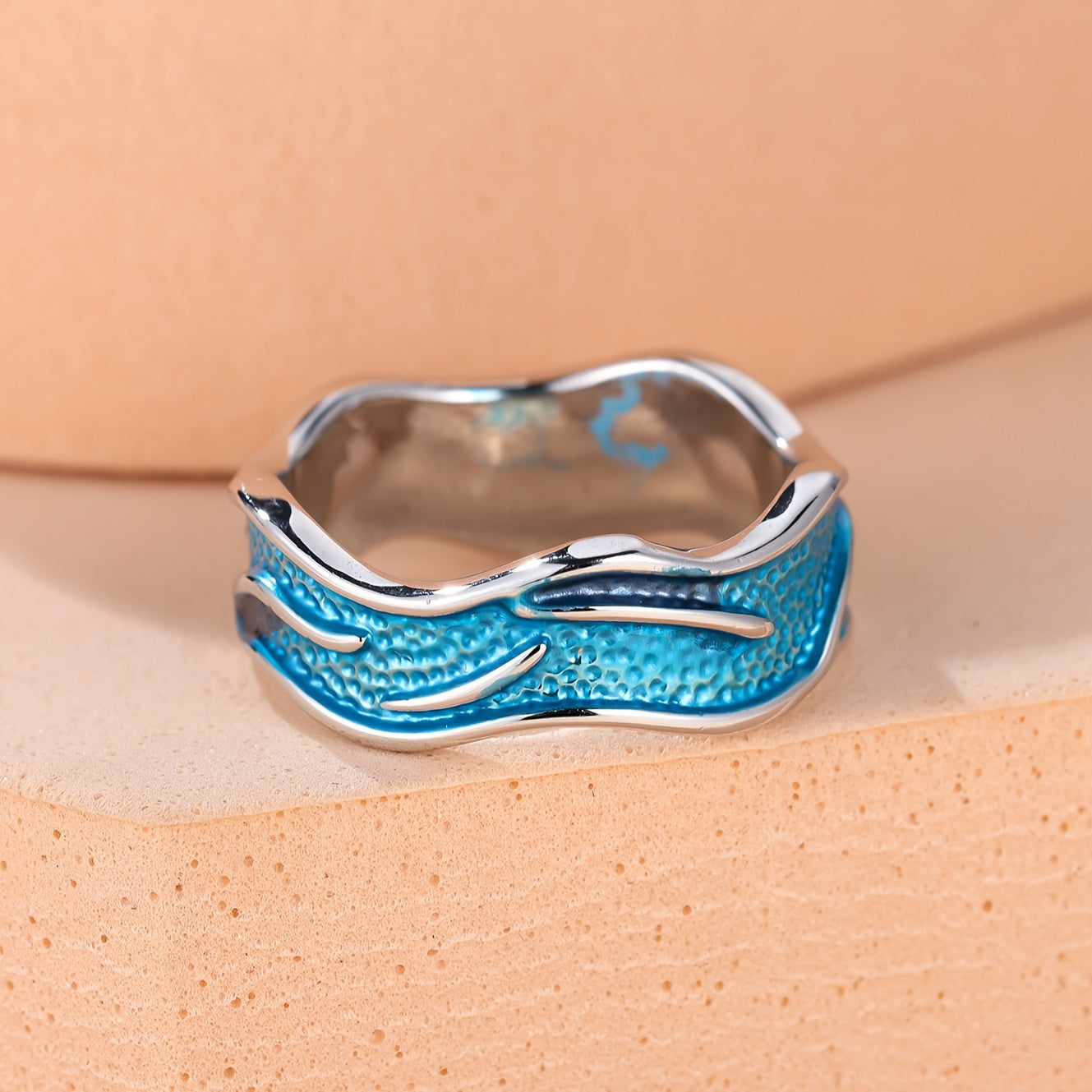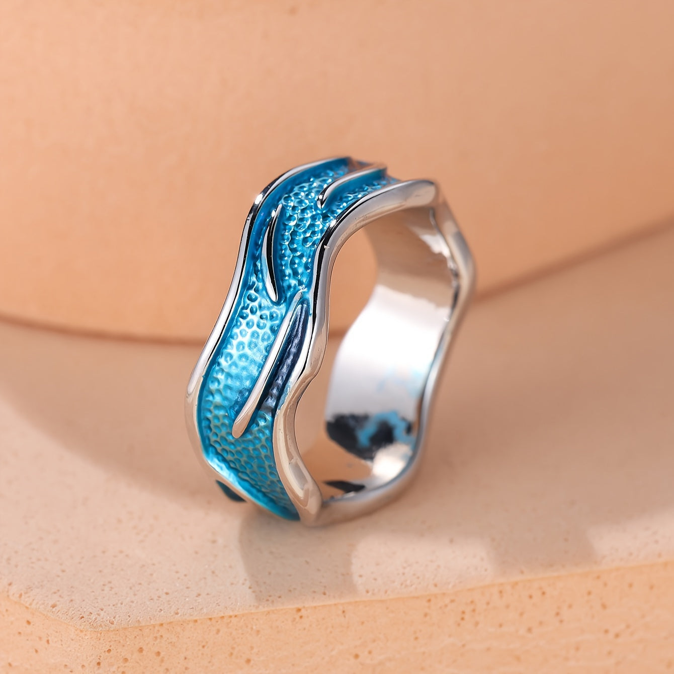 Elevate your style with this versatile band ring featuring an irregular wave design in a trendy green color. Perfect for daily wear or special occasions.