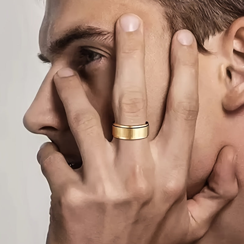 Enhance your style with this fashionable men's 8mm golden ring. Perfect as a jewelry accessory or gift.