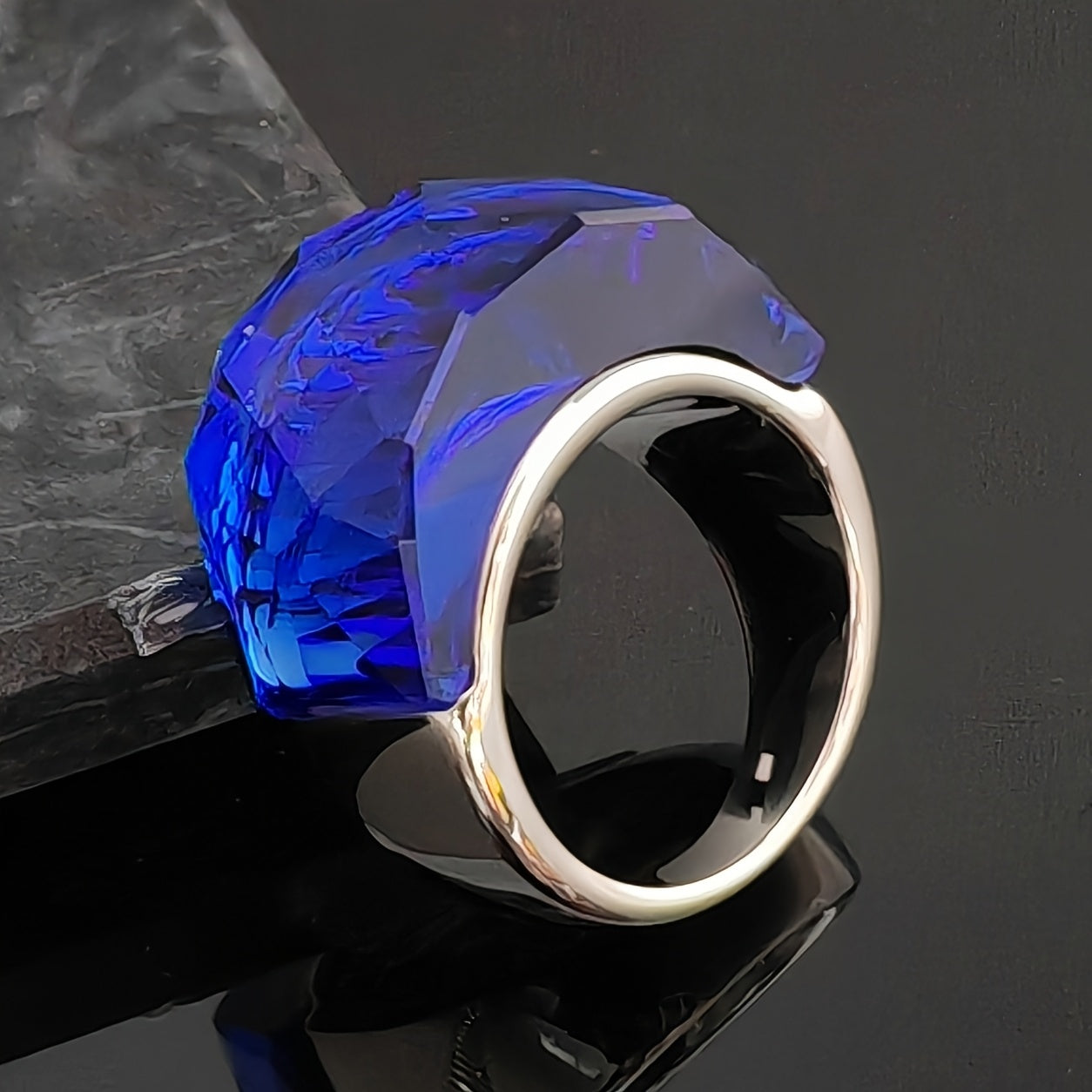 This stunning ring is made of high-quality Steel 316 stainless steel and features a synthetic gemstone cubic artificial crystal glass in a geometric design. Perfect for female titanium steel enthusiasts.