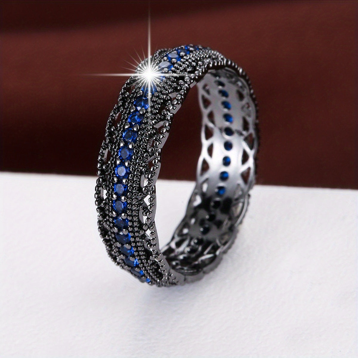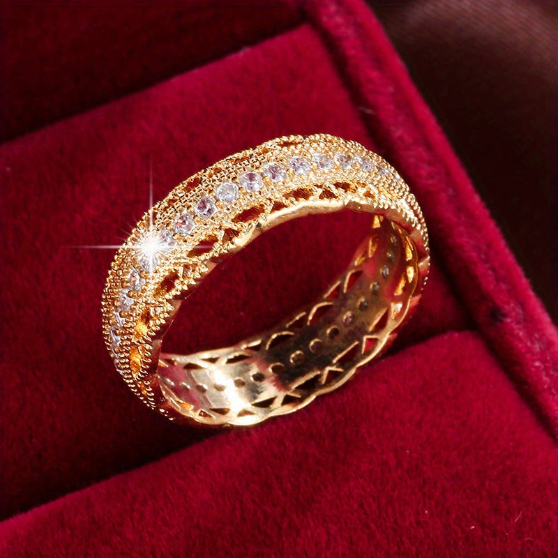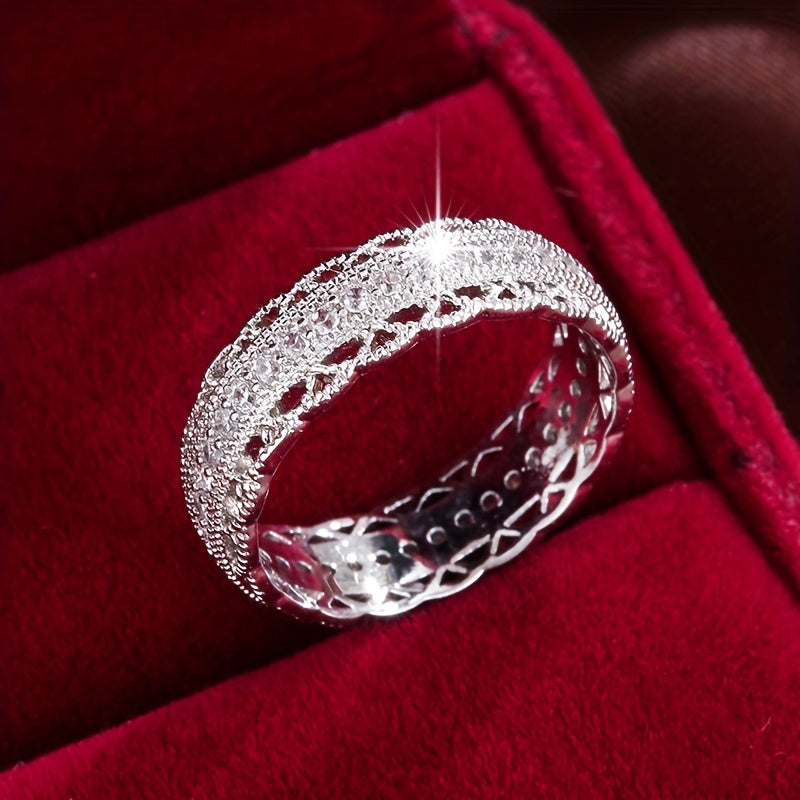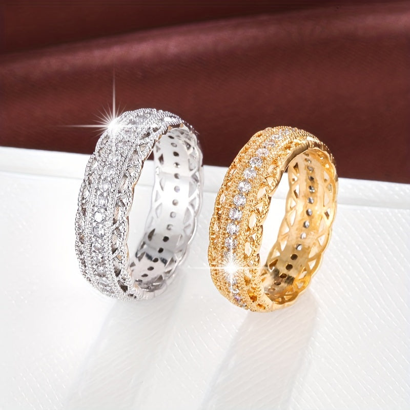 Enhance your look with this chic synthetic zirconia ring featuring a stunning cutout design. Crafted for durability and style.