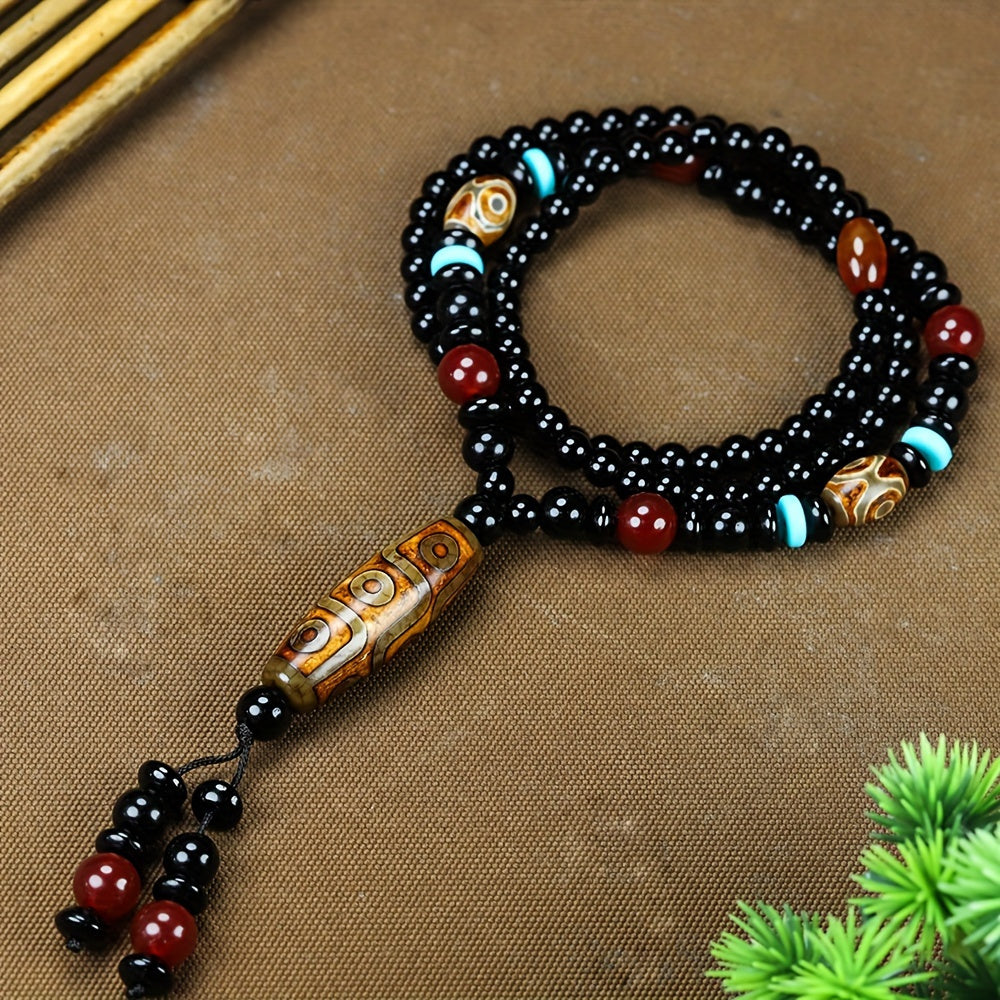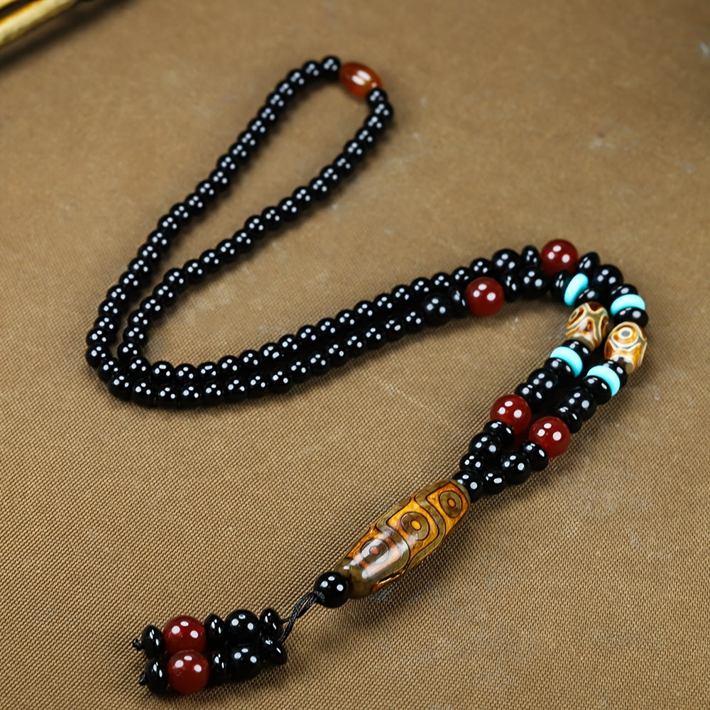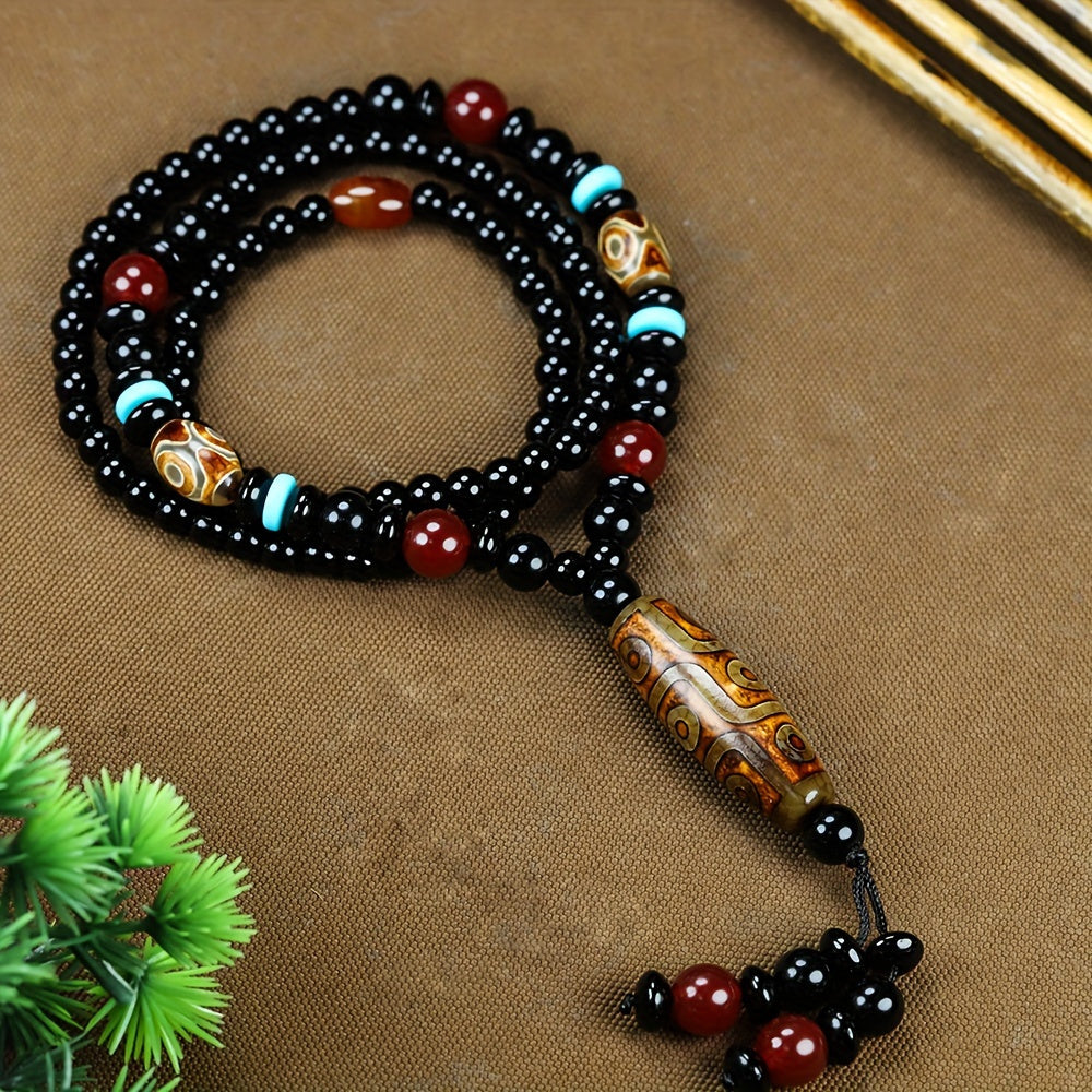 This necklace features a traditional Tibetan agate nine-eyed bead pendant, a symbol of protection and healing. The natural stone is perfect for daily wear or as a gift for special occasions.