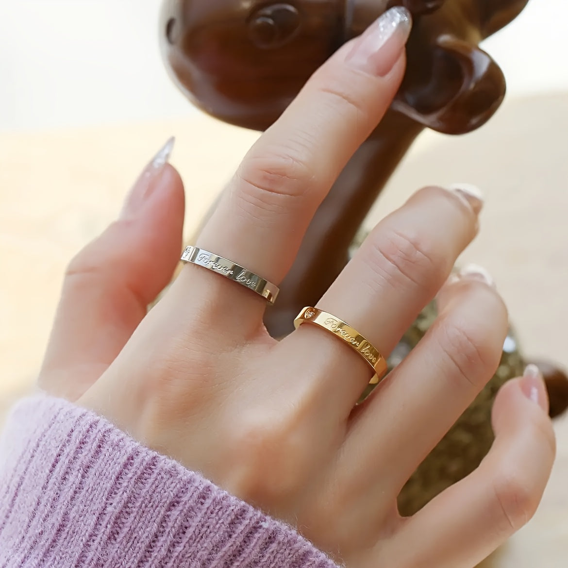 Titanium Forever Love Ring Minimalist Interlocking Letter
