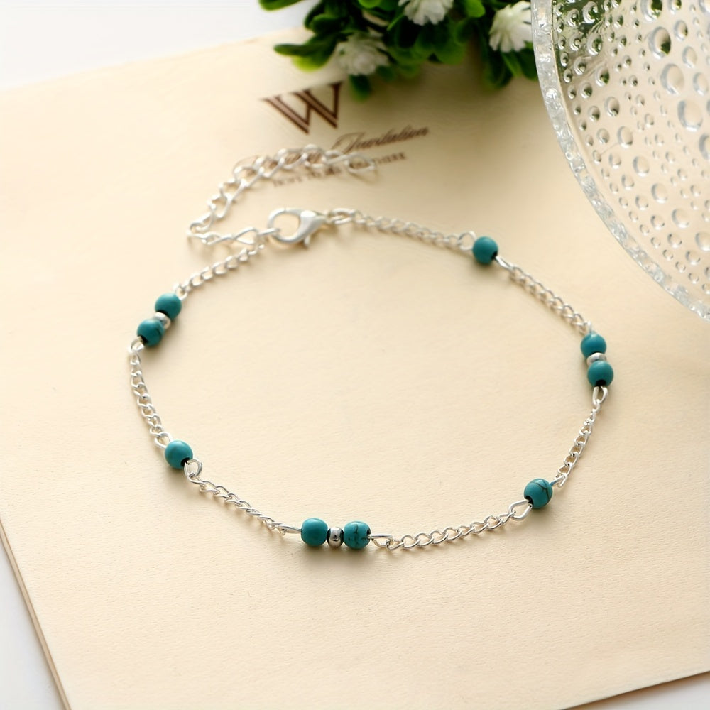 Enhance your beach look with this stylish turquoise anklet. Handmade with quality beads, this anklet adds a touch of boho charm to your style.