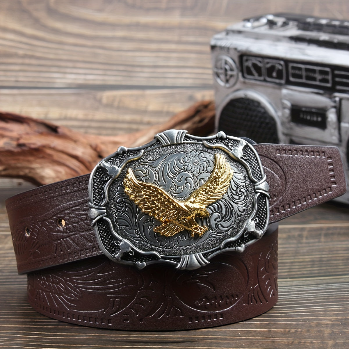 Unisex Eagle Buckle Belt with Vibrant Floral Print