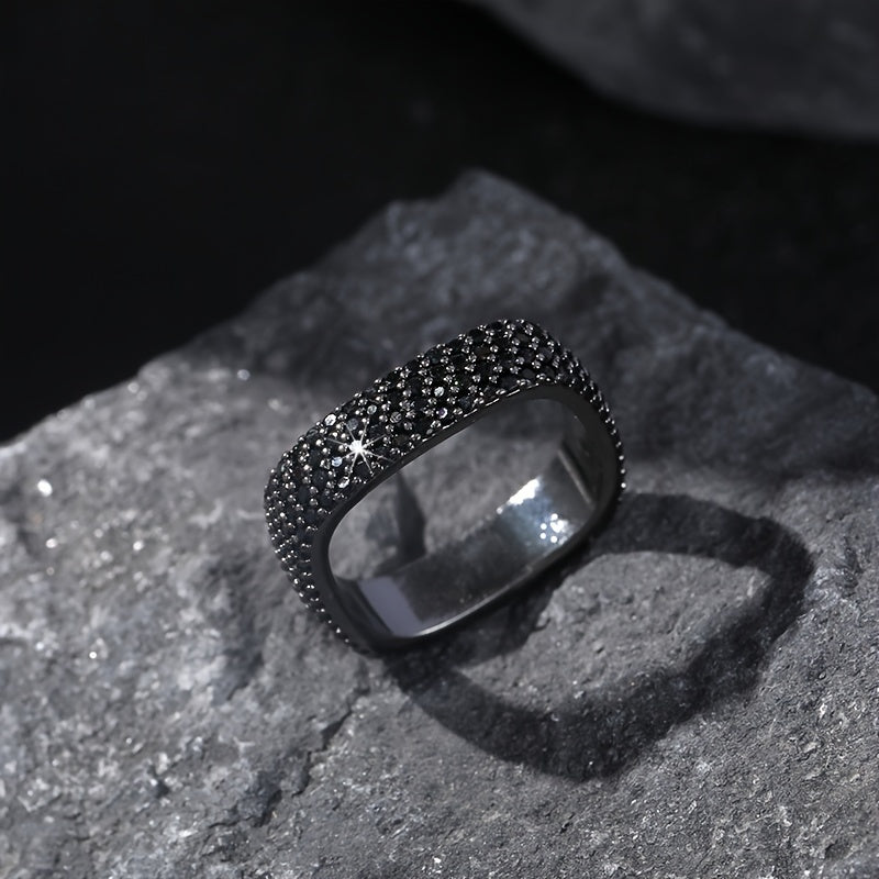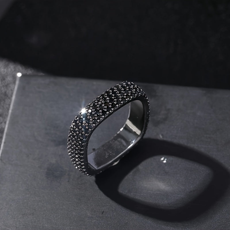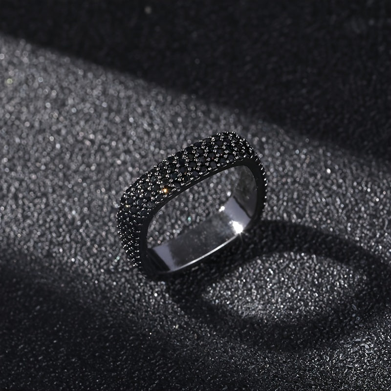 Vintage Gunmetal Ring Wide Band 4 Row Sparkling Zirconia Stones