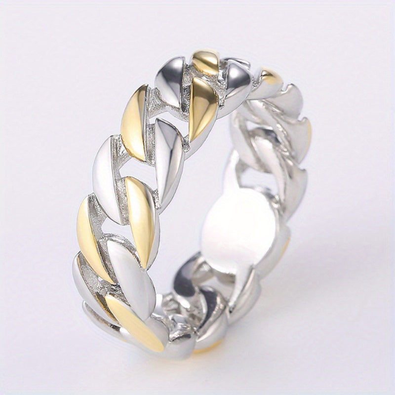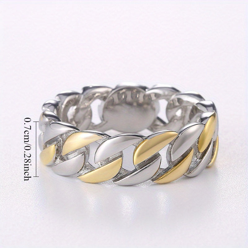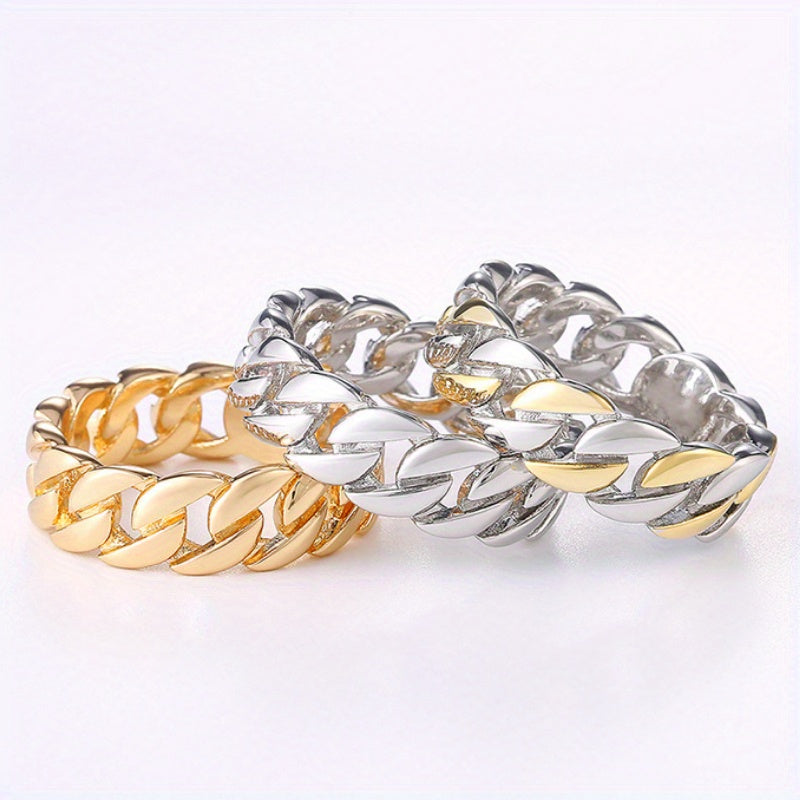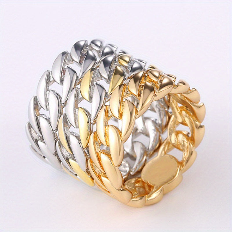 Vintage Hip Hop Two Tone Chain Link Ring for Women Men Copper Material