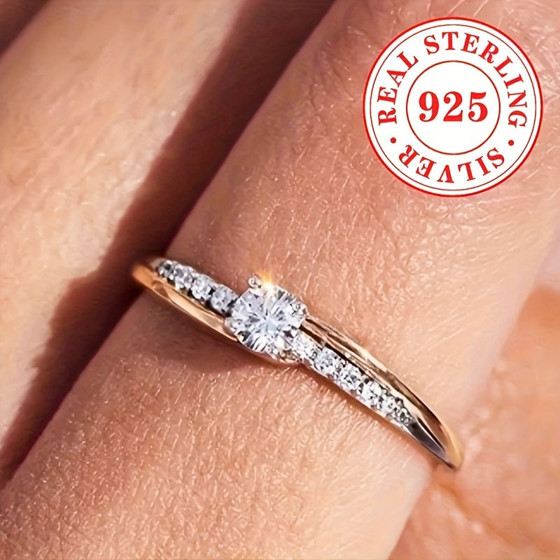 This stunning engagement ring features a two-tone design crafted from 925 sterling silver and adorned with high-quality synthetic zirconia for a sparkle that will capture her heart.
