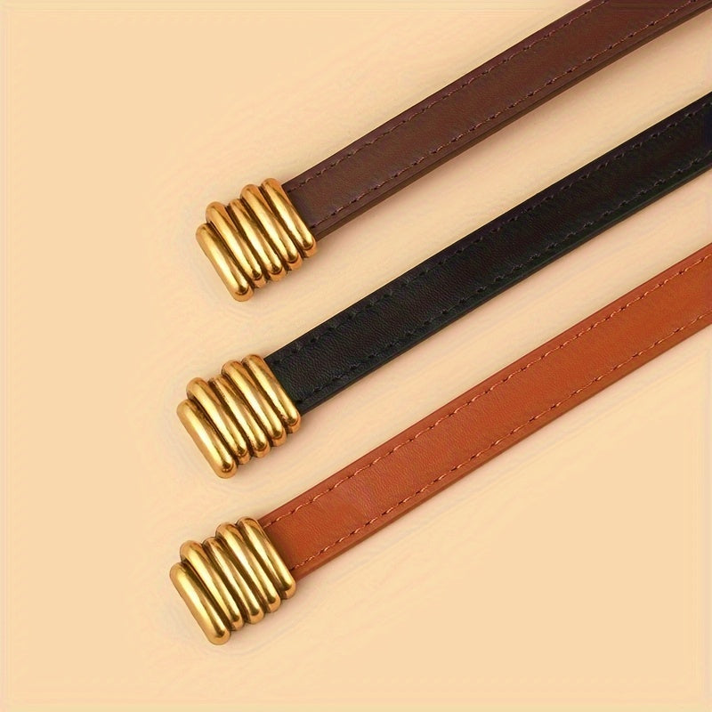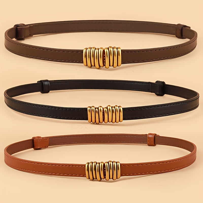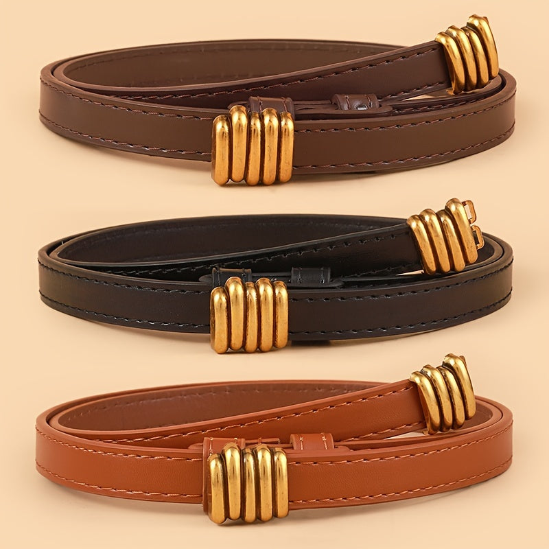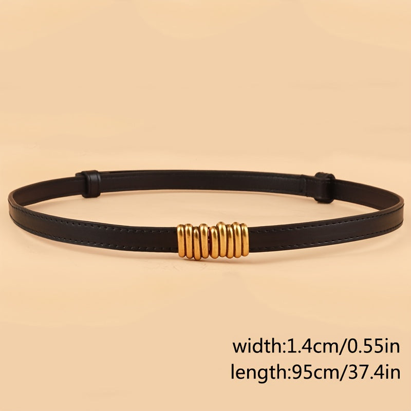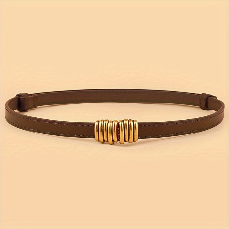 Elevate your outfit with this stylish stretch belt featuring an elegant alloy buckle. Perfect for sweater dresses and more.