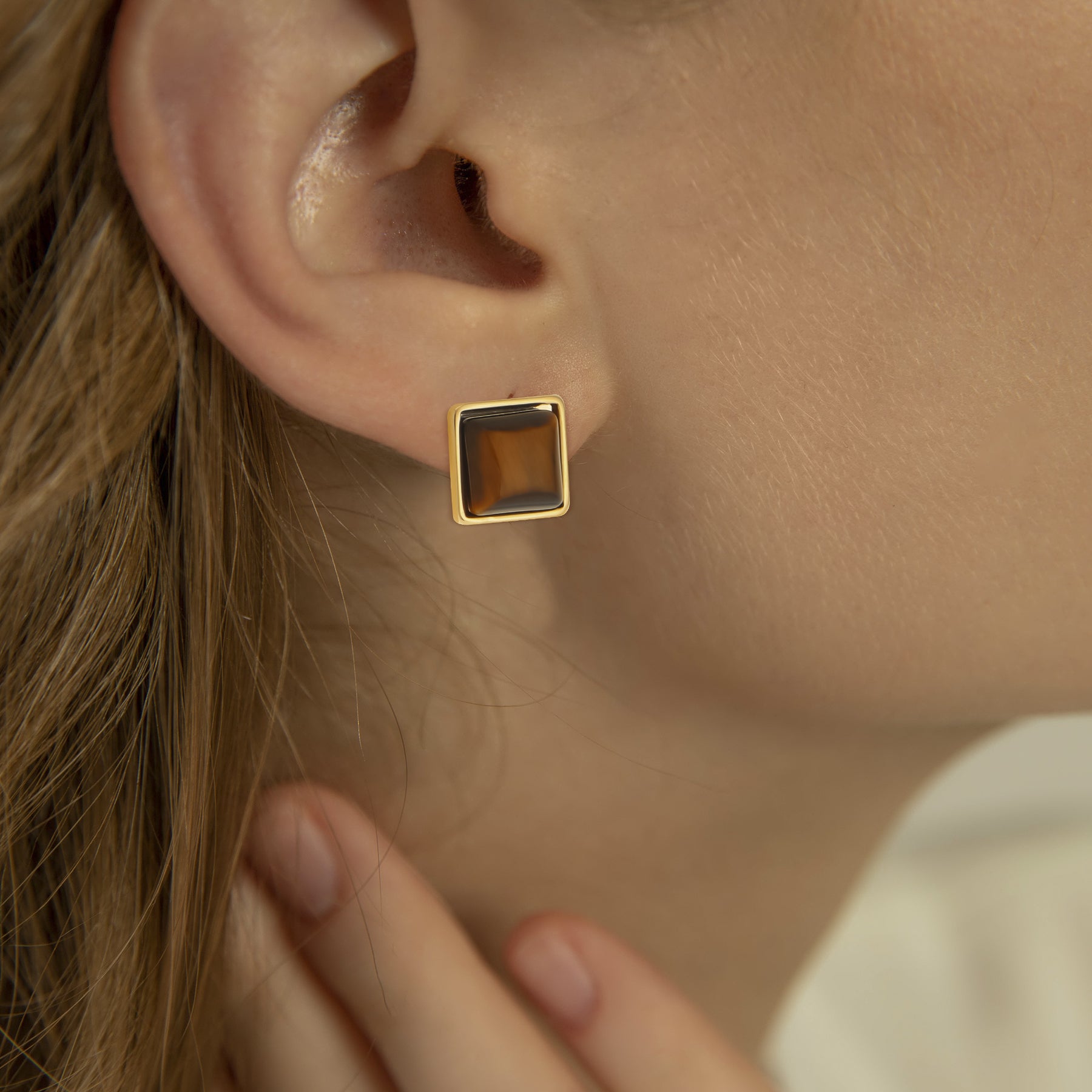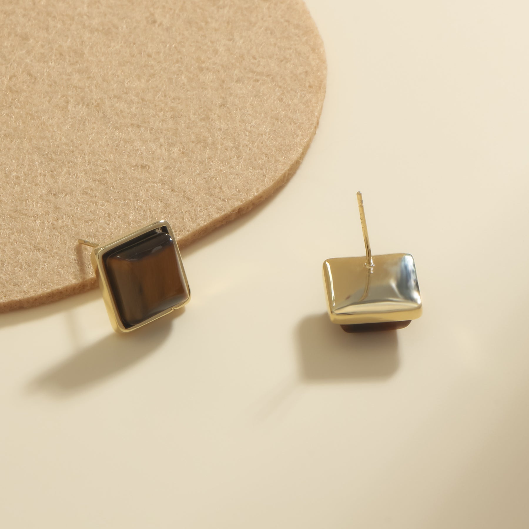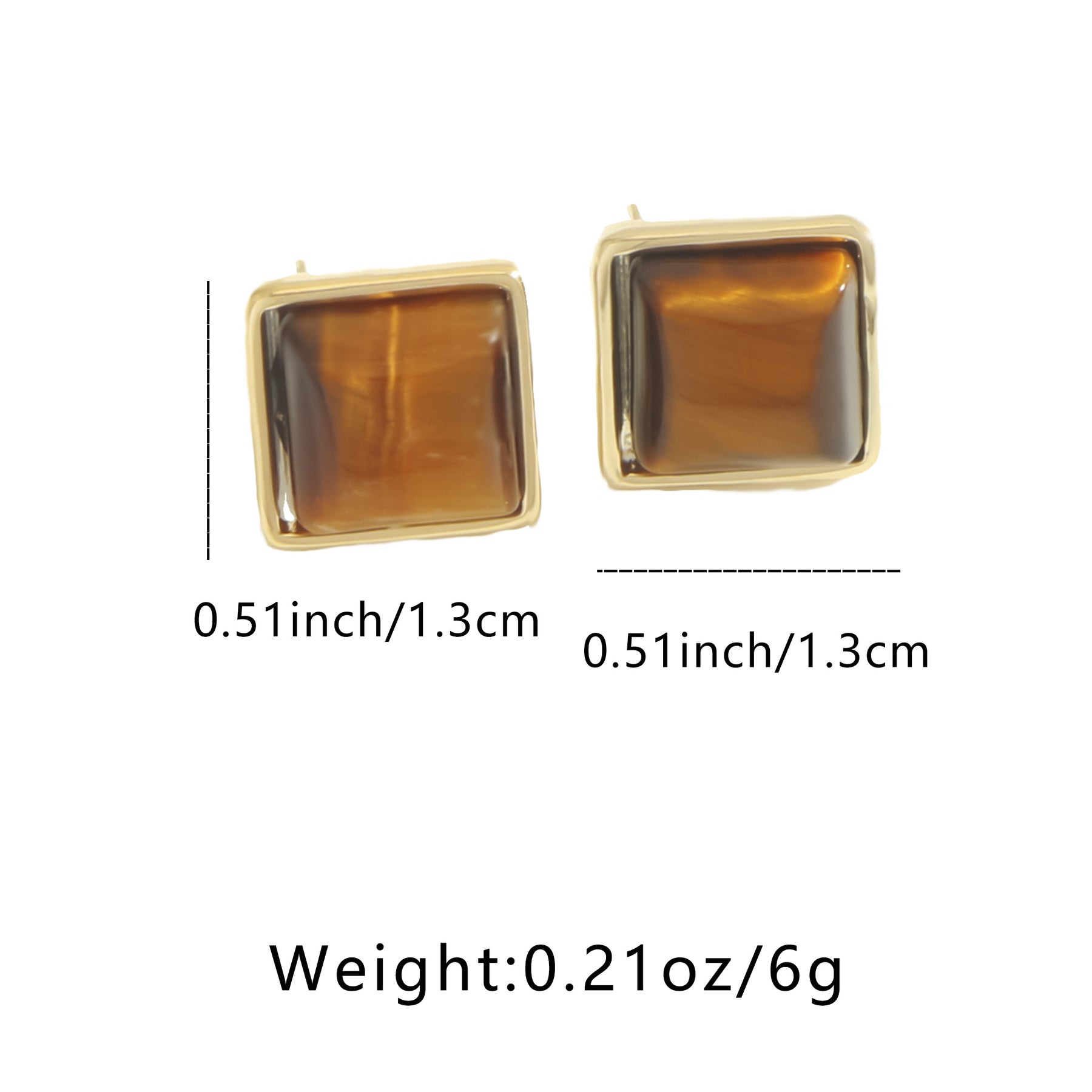 These earrings feature a square amber design inlaid with resin for a stylish look. Made from hypoallergenic material, they are perfect for daily wear and special occasions.