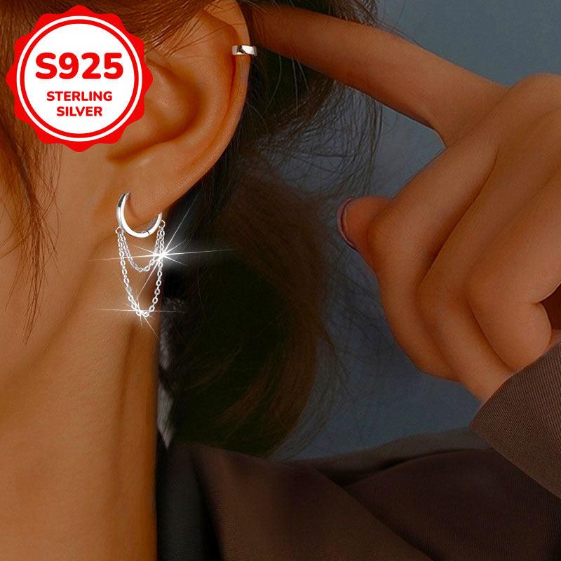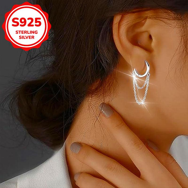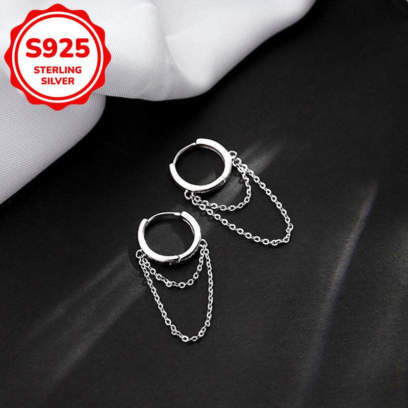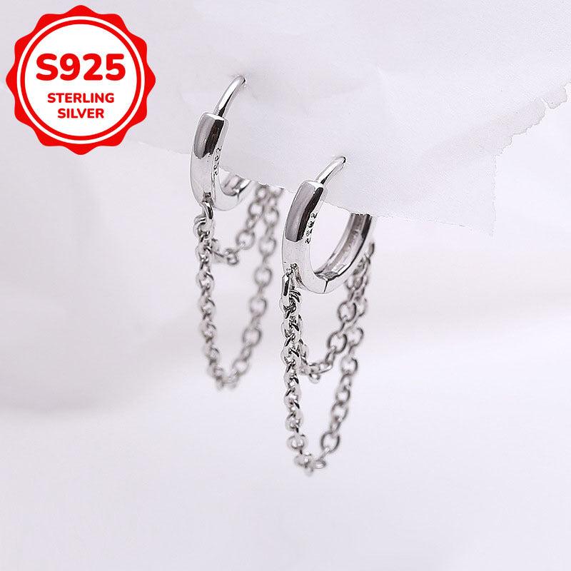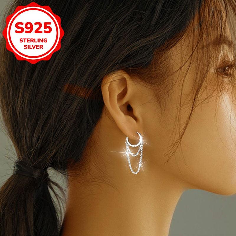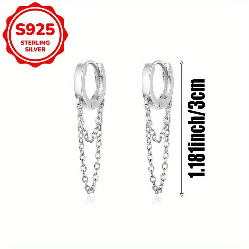 These stylish double layer chain pendant earrings are made of 1 6g S925 silver, perfect for daily wear, parties, and vacations.